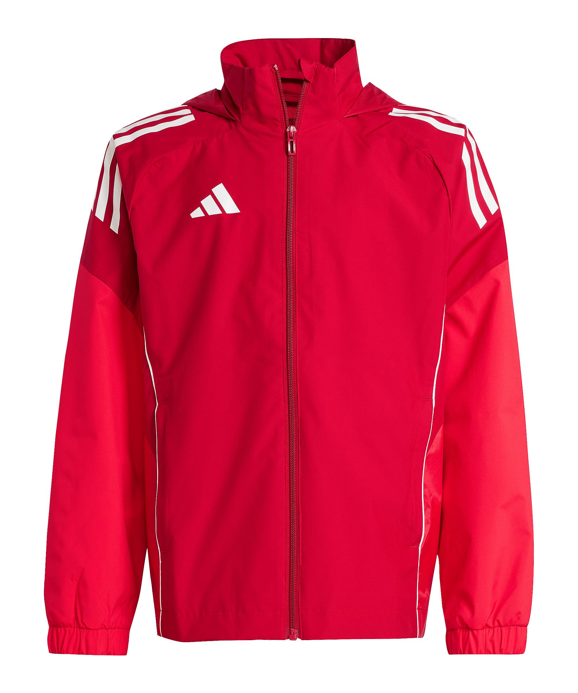 Diese adidas Tiro 25 Competition Regenjacke Kids gehouml;rt zur adidas Teamwear. Der wasserabweisende Top Layer in Kinder-Grouml;szlig;en ist fuuml;r Vereine und Fuszlig;ballmannschaften konzipiert - mit Fokus auf haltbare Qualitauml;t, funktionales Design und einen attraktiven Grundpreis. Du kannst diese Teamsportvorteile aber auch gerne fuuml;r deine eigene Sportausruuml;stung nutzen. Sehen wir uns gemeinsam das praktische Stuuml;ck Trainingsbekleidung aus dem adidas Teamsportkatalog im Detail an: High Performance adidas Fuszlig;ball Regenjacke fuuml;r Kinder Die Premium Teamsport-Allwetterjacke fuuml;r junge Fuszlig;baller uuml;berzeugt mit hochkarauml;tiger Ausstattung. Du bekommst hier folgende Features und Merkmale: Dicht gewebten Polyester mit wasserabweisender Beschichtung, einen lockeren geraden Regular-Schnitt fuuml;r oben druuml;ber, grouml;szlig;enverstellbare Kapuze, den hochschlieszlig;enden Kragen mit Reiszlig;verschluss und Zippergarage am Kinn, Mesh-Innenfutter, Tiro-Signature-Design mit Kontrastlinien seitlich und natuuml;rlich hohe Nachhaltigkeit durch Einsatz von recyceltem Polyester. Ein schouml;n gestaltetes Detail: Die Reiszlig;verschlusstaschen seitlich sind unauffauml;llig integriert hinter dem Kontraststreifen. Aus der adidas Teamsportkollektion Tiro 25 Competition Wenn es hochwertig sein soll, ist adidas Tiro 25 Competition genau das Richtige. Ob die Premium-Teamsportlinie zu deinen/euren Anforderungen passt, siehst du in dieser adidas Tiro 25 Competition Uuml;bersichtstabelle: Preislage: Basic nbsp;|nbsp; Midrange nbsp;|nbsp; Premium Grouml;szlig;en: Herren nbsp;|nbsp; Kinder nbsp;|nbsp; Damen Sortiment: Matchwear nbsp;|nbsp; Trainingsbekleidung nbsp;|nbsp; Prauml;sentationsanzug nbsp;|nbsp; Freizeitkleidung nbsp;|nbsp; Sportunterwauml;sche Design: Tiro 25 Competition ist eine spannende Design-Erweiterung mit professionellem Anspruch. Umfassend im Sortiment, mit zwei Trikot-Optionen im Signature-Look inklusive passendem Torwarttrikot und eigener Freizeitbekleidung unter dem Namen quot;Travelquot;. nbsp; Produktdetails: Typ: adidas Regenjacke / Teamsport-Oberteil / Fuszlig;ball-Trainingsbekleidung Grouml;szlig;en: fuuml;r Kinder Lieferumfang: 1 Stuuml;ck Kollektion: adidas Tiro 25 Competition Farbe: Team Navy Blue 2 / Crew Blue Nachbestellbar bis: Anfang 2027 (Angabe von adidas) Schnitt und Ausstattung Passform: lockerer gerader Schnitt (Regular Fit) Armlauml;nge: lang Kragen: hochschlieszlig;ender Kragen mit integrierter Kapuze Schulterschnitt: Raglanschnitt Armabschluss: Elastikbuuml;ndchen Saum: offen Verschluss: verdeckter Reiszlig;verschluss Taschen: Reiszlig;verschlusstaschen seitlich Technologie: wasserabweisende Beschichtung Logo: Druck Material Nachhaltiges Produkt: mit recycelten Materialien hergestellt Material: 100% Polyester (PET) Pflegehinweise beachten nbsp; adidas Teamwear bedruckt und sofort einsatzbereit Das neue Team-Outfit soll direkt spielfertig aus dem Karton kommen? Perfekt. Teamwear zu bedrucken mit Club-Logos, Vereinsschriftzug, Spielernamen, Ruuml;ckennummern und Sponsorenlogos, ist eine unserer groszlig;en Kernkompetenzen. Wir veredeln alles: von Trikotsauml;tzen uuml;ber Mannschaftsbekleidung und Regenjacken bis zu Teamtaschen und Vereinspullover fuuml;r Fuszlig;ball, Handball, Basketball, Volleyball und Co. Uuml;ber 10.000 Amateurmannschaften, Clubs und Hobby-Sportteams vor Ort und in ganz Europa vertrauen bereits unserer Teamsport-Kompetenz. Auch Bedruckung von Einzelteilen bei 11teamsports mouml;glich Bestelle dir deine persouml;nliche Beschriftung einfach mit dazu ndash; direkt ab dem ersten Teil. Und so geht#39;s, wenn die Druckoption fuuml;r deinen Wunschartikel verfuuml;gbar ist: gewuuml;nschte Grouml;szlig;e wauml;hlen erscheinende PRODUKT INDIVIDUALISIEREN-Option ouml;ffnen nach Wunsch konfigurieren Produkt in den Warenkorb legen