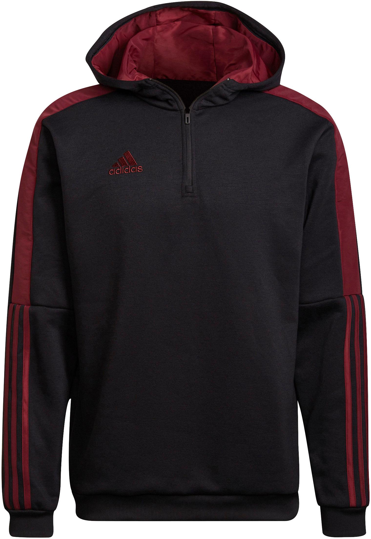 Hoodie in modernem Brand-Design mit verkürztem Reißverschluss; gefütterte Kapuze; Logostickerei auf Brusthöhe; akzentuierender Farbstreifen mit 3-Streifen-Detail am Ärmel; Ärmelabschlüsse und Saum gerippt; weiche, wärmende Fleece-Innenseite; normale Passform; aus Recyclingmaterial hergestellt; Material 100% Polyester (recycelt).