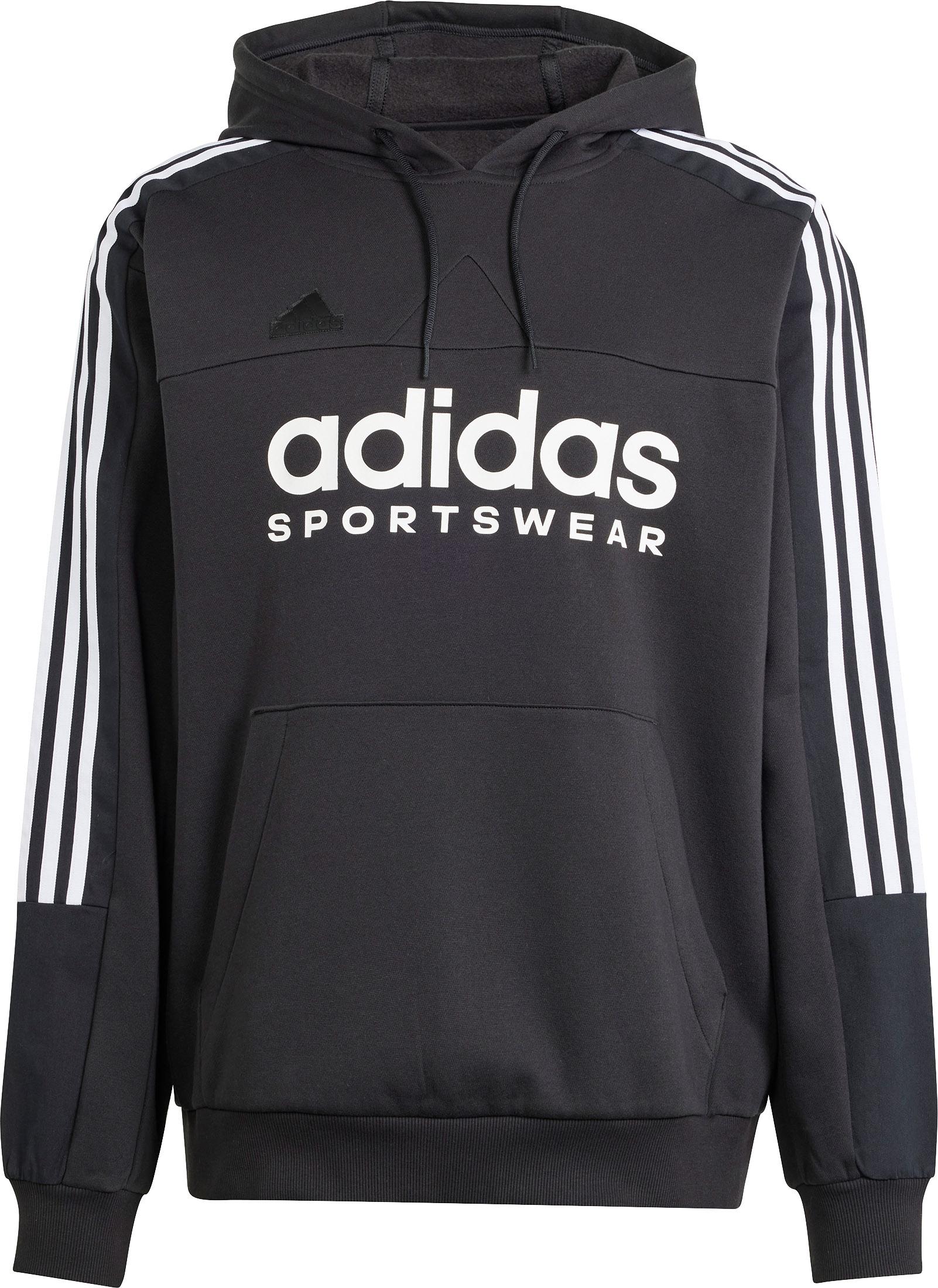 Hoodie im sportiven, komfortablen Design; Kapuze mit Kordelzug; geräumige Kängurutasche; großer Label-Schriftzug auf der Vorderseite; 3-Streifen entlang der Ärmel; Saum und Ärmelbündchen gerippt; weiche Fleece-Innenseite; Material 70% Baumwolle, 30% Polyester (recycelt).