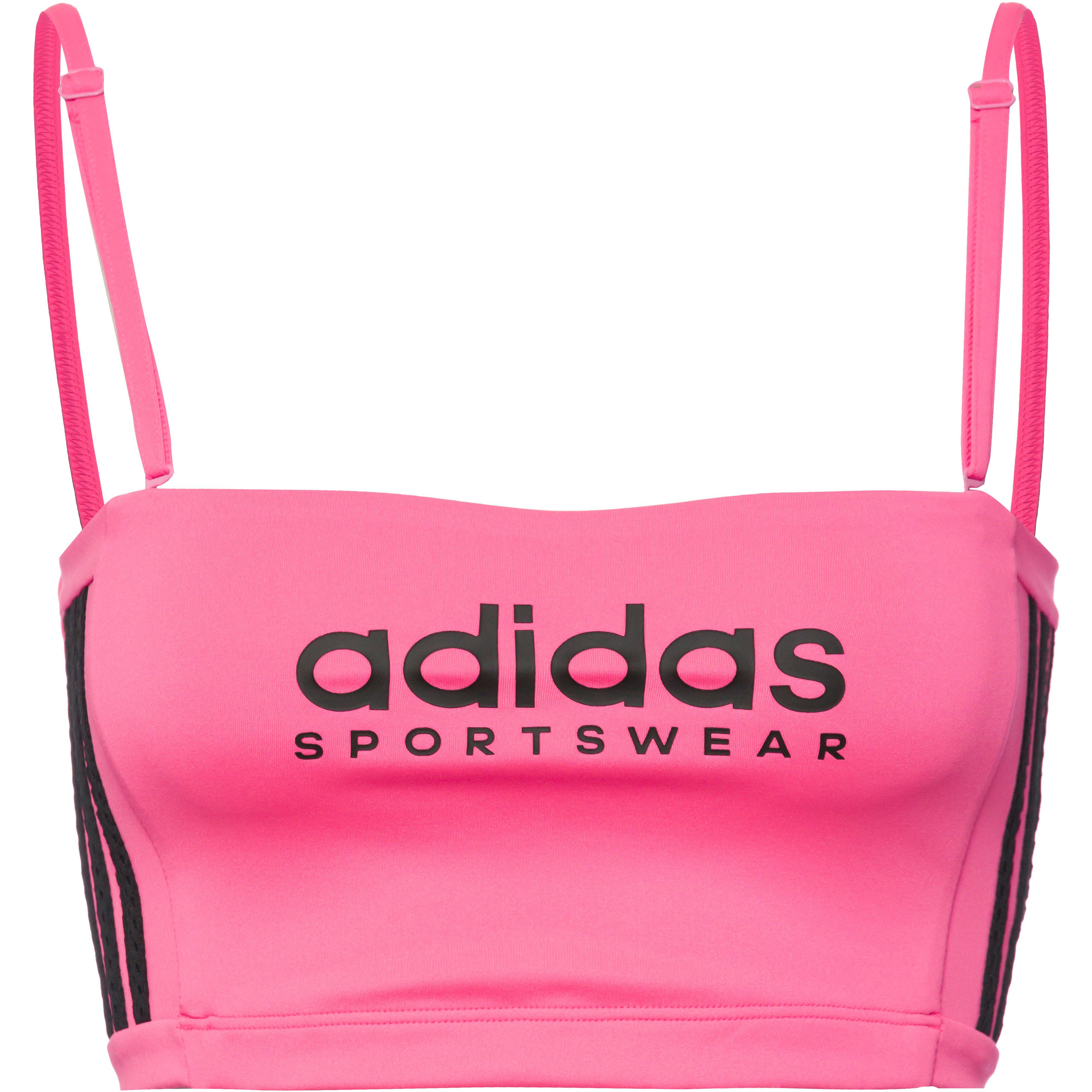 Spaghettitop aus elastischem Stretchgewebe; abnehmbare und Größen verstellbare Träger; Markendetails; Material 91% Polyester (recycelt), 9% Elastan.