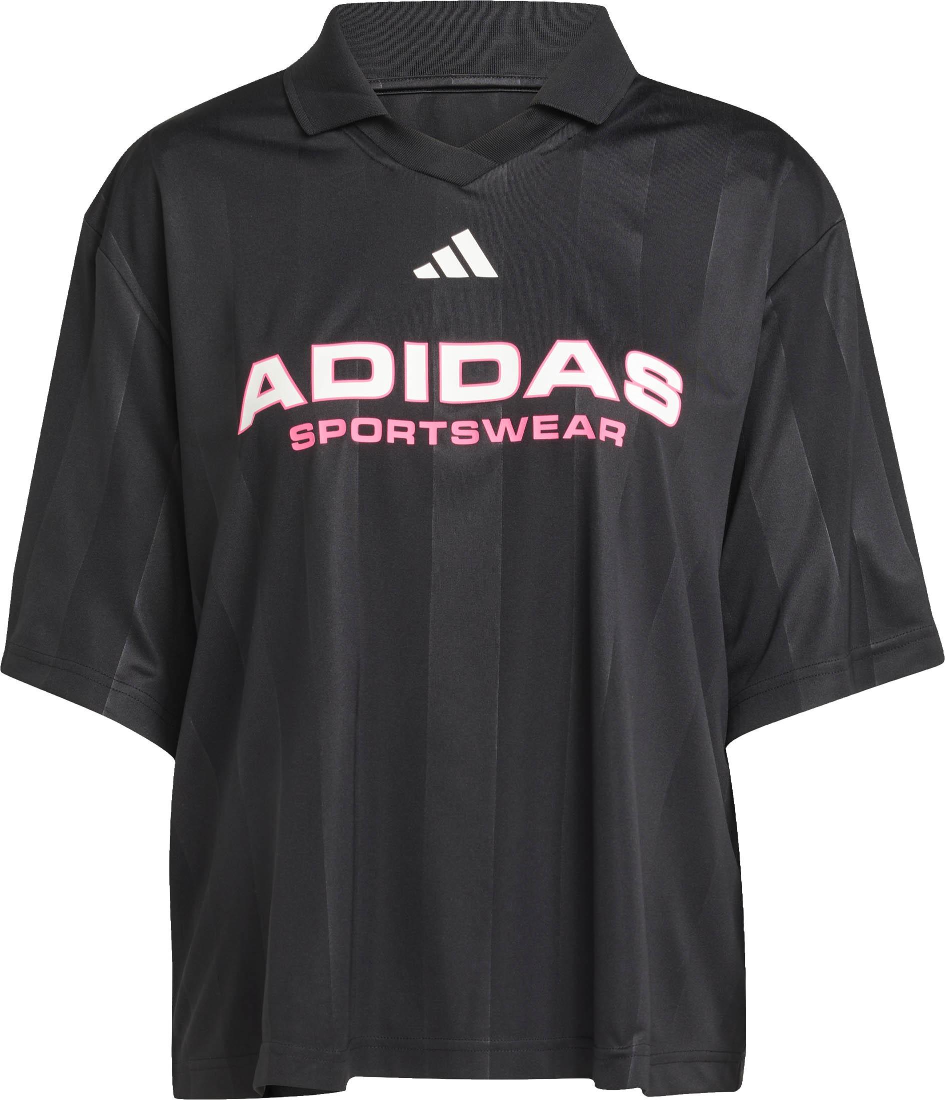 Fußballtrikot in lässiger Oversize-Passform; durchgehendes Streifenmuster; V-Ausschnitt mit umgeschlagenem Kragen; Labelprint auf der Vorderseite; Material 100% Polyester (recycelt).