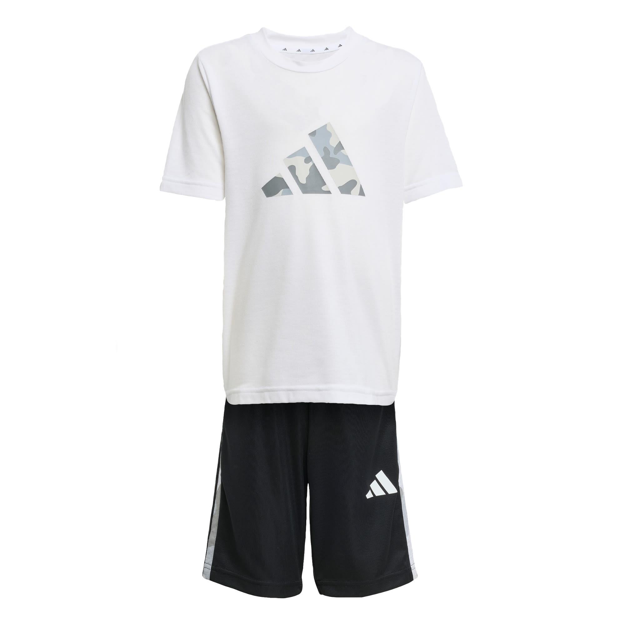 Mit dem adidas Train Essentials Set für Kinder mit Camouflage-Print können die Kleinen voll durchstarten. In diesem vielseitigen Outfit sind junge Sportlerinnen und Sportler jederzeit für jede Aktivität gerüstet. Das Set besteht aus einem kurzärmeligen T-Shirt mit Rundhalsausschnitt und passenden Sportshorts. Beide Teile sind leicht und können in der Schule, im Park und überall sonst getragen werden. Sie haben ein cooles Camouflage-Muster sowie die 3-Streifen und das 3-Streifen-Logo. CLIMACOOL leitet Feuchtigkeit von der Haut ab und sorgt für ein kühles und trockenes Tragegefühl – keine Ablenkung, nur Performance.CLIMACOOL Materialien ermöglichen ein schnelles und effizientes Feuchtigkeitsmanagement. Dank schnell trocknender Fasern fühlt sich dein kleiner Wirbelwind angenehm frisch.