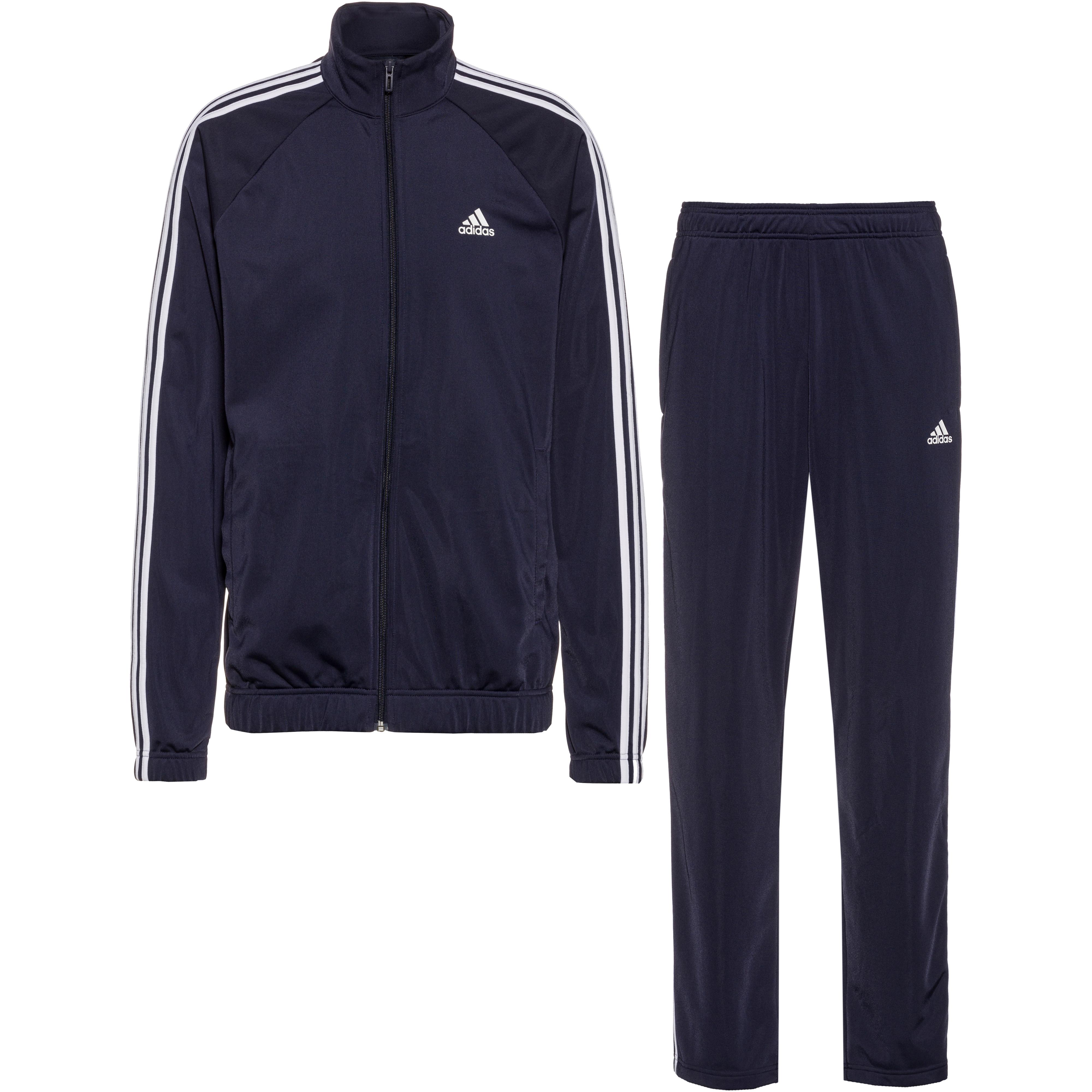 adidas Bequemer, bewegungsfreundlicher Trainingsanzug; Jacke mit Stehkragen; bewegungsfreundliche Raglanärmel; seitliche Eingriffstaschen; elastischer Saum; Hose mit weitenregulierbarem Elastikbund und seitlichen Eingriffstaschen; Material 100% Polyester.
