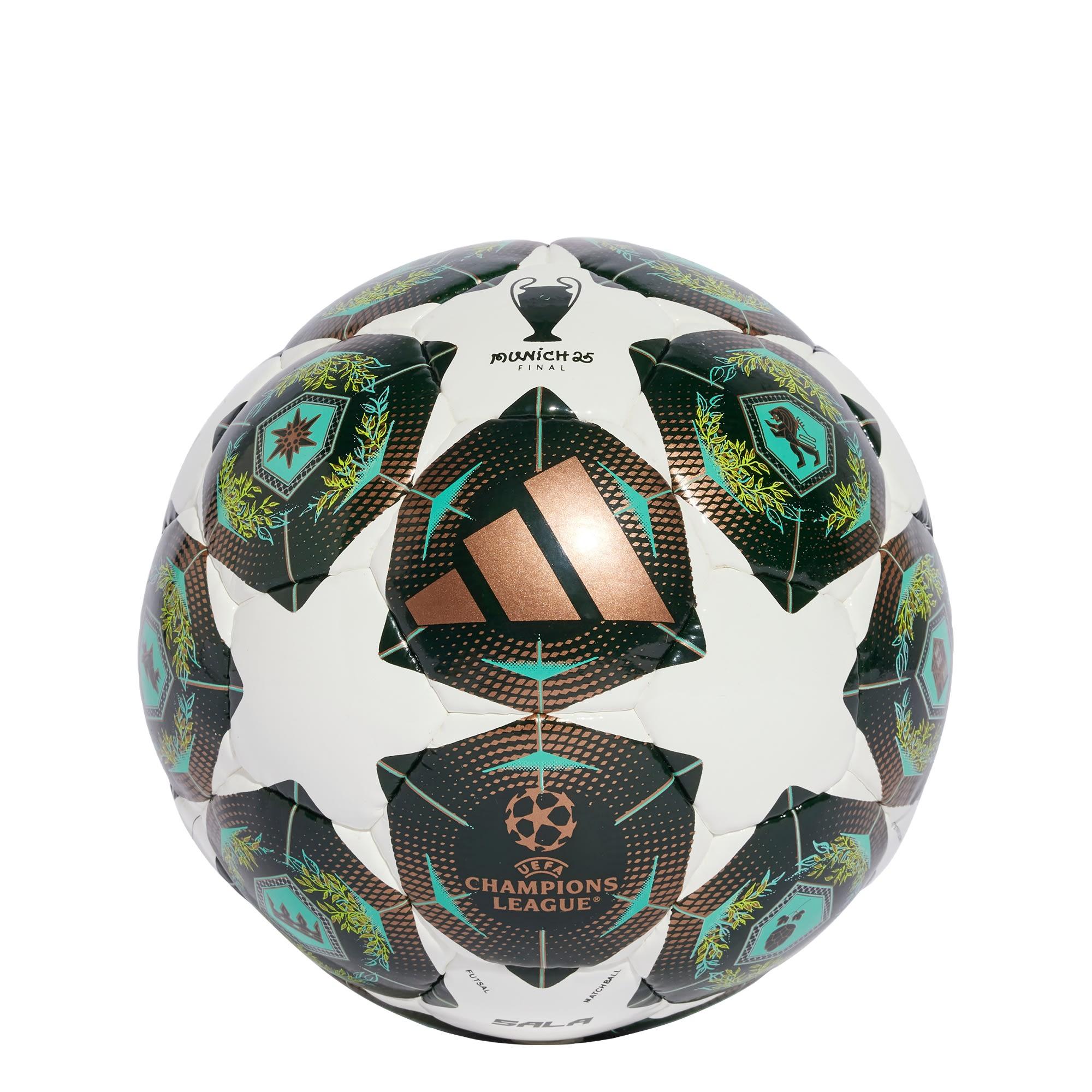 Der offizielle UCL Spielball ist eine Hommage an München. Von seinem Design inspiriert, greift auch diese Sala Version den pittoresken Flair der Stadt und die patinierten Kupferkuppeln ihrer Sehenswürdigkeiten mit verschiedenen Grüntönen auf. Die handgenähte Oberfläche kommt mit aufwendigen Stadtdetails und dem Logo des Turniers. Sein Design mit geringem Rückprall wurde speziell für die blitzschnellen Moves beim Futsal entwickelt.