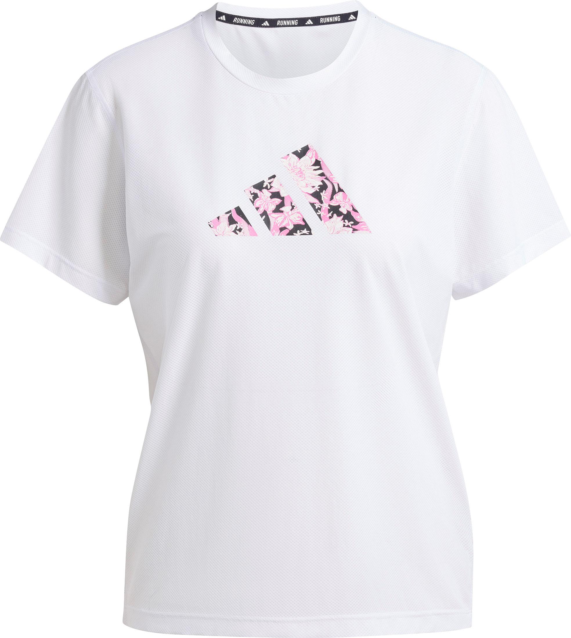 Funktions-T-Shirt mit floral gemustertem 3 Bar Logo; elastisches Material mit feiner Struktur; atmungsaktiv, feuchtigkeitsableitend, schnelltrocknend und strapazierfähig durch AERO.RDY-Technologie; Rundhalsausschnitt mit Nackenband; abgerundeter, auf der Rückseite leicht verlängerter Saum; normale Passform; mit Recyclingmaterial hergestellt; Material 86% Polyester (recycelt), 14% Elastan.