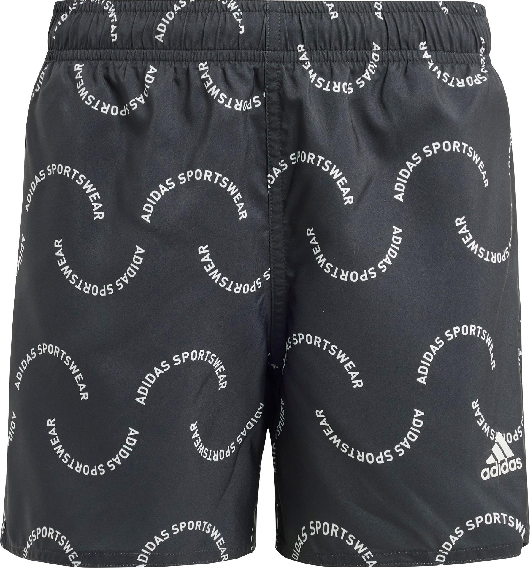 Stylishe Badehose mit Allover-Print für Kinder; chlorresistent und langlebig dank Infinitex® Fitness; weitenregulierbarer Gummibund mit innenliegendem Kordelzug; 1 Gesäßtasche; Logoprint am Bein; enthält Recyclingmaterial; Material 100% Polyester.