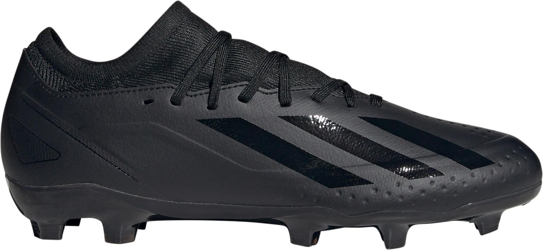 Einfarbige Fußballschuhe mit Stollen für festen, trockenen Naturrasen; aus der Kollektion X, die u.a. von Mo Salah und Gareth Bale getragen wird; leicht und stabil; ideal für explosive Sprints; Textil-Obermaterial mit strapazierfähigem Synthetik-Überzug und Belüftungsperforation; sockenähnlicher Schaft zum Hineinschlüpfen; klassische Schnürung; seitliche 3-Streifen; weiche EVA-Mittelsohle; mit Recyclingmaterial hergestellt.