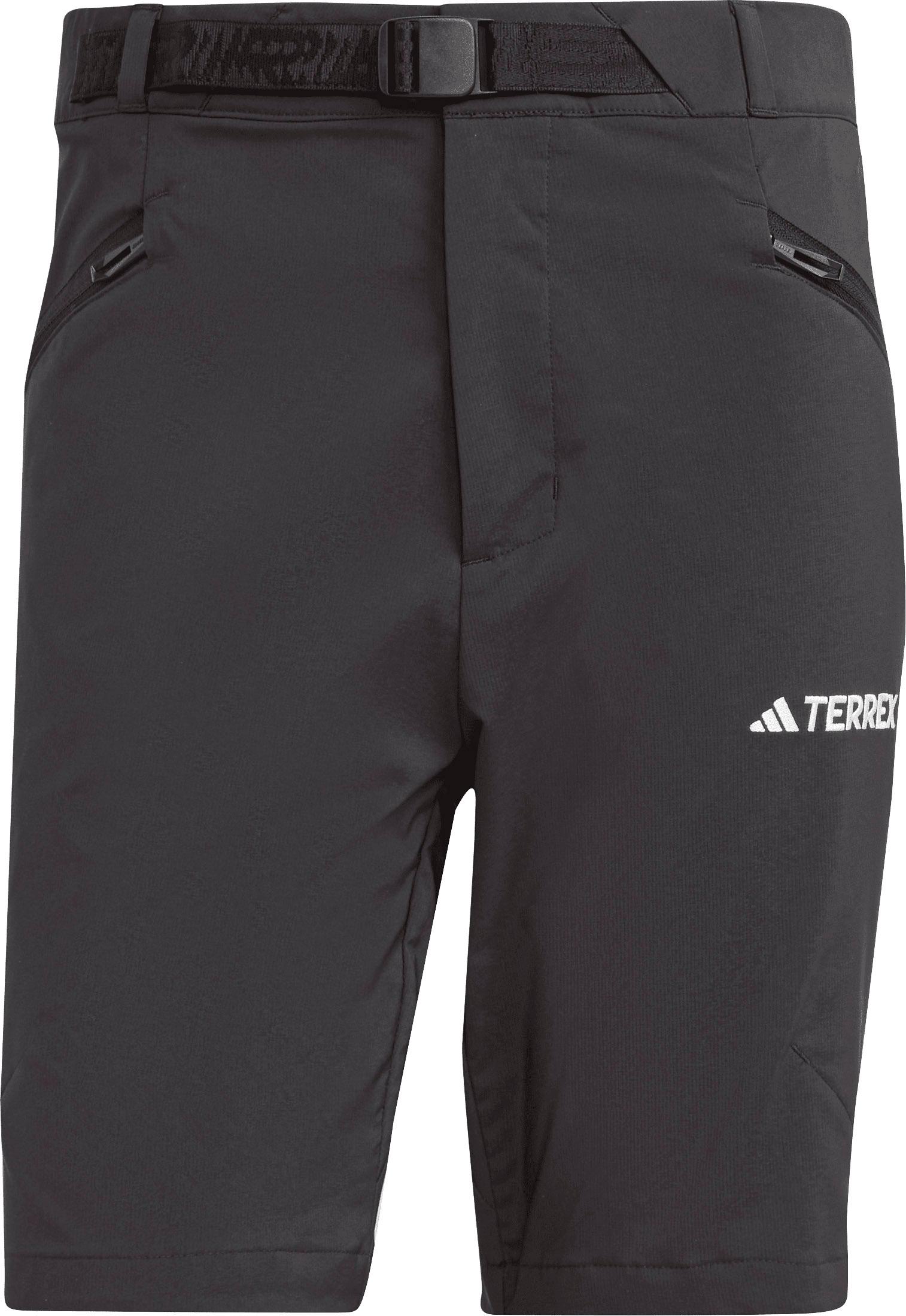Elastische Funktionsshorts für Outdoor-Aktivitäten; langlebiges, doppellagiges Material; wasserabweisend; elastischer Bund mit integriertem Gürtel; Knopf- und Reißverschluss; seitliche Eingrifftaschen mit Reißverschluss; Logodetail; schmale Passform; aus Recyclingmaterial hergestellt; Material 94% Polyester (recycelt), 6% Elastan.