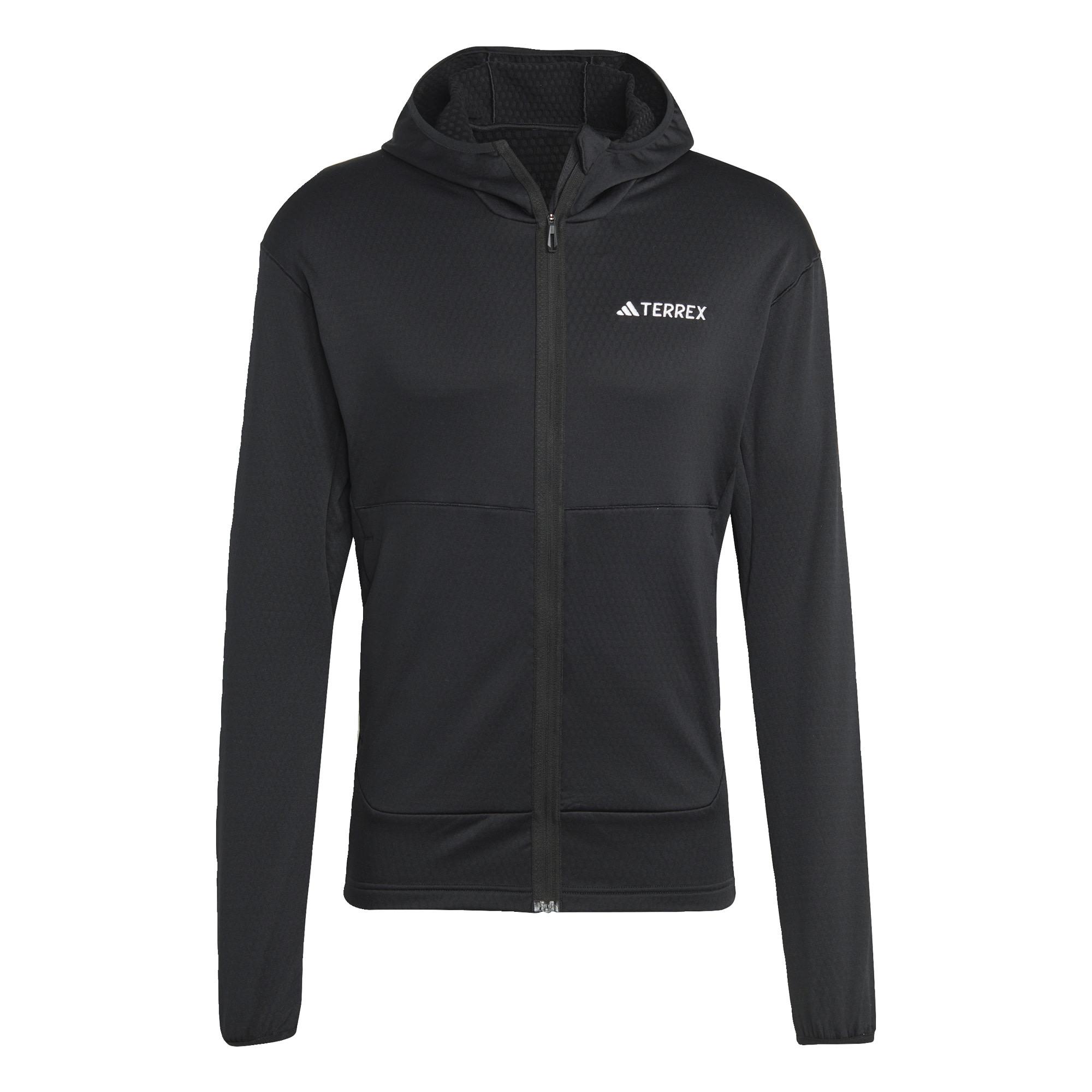 Weiche Kapuzen-Fleecejacke; durchgehender Reißverschluss mit Kinnschutz; hochabschließender Kragen; 2 seitliche Reißverschlusstaschen; elastische Ärmelbündchen; Innenseite mit Wabenstruktur; Material 94% Polyester (recycelt), 6% Elastan.