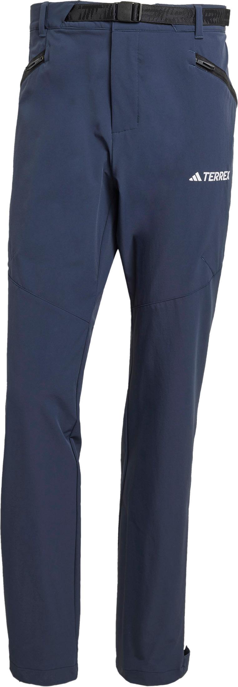 Wasserabweisende Wanderhose mit ohne PFC hergestellter Imprägnierung; elastisches, bewegungsfreundliches Material; halbelastischer Bund mit integriertem, verstellbarem Gürtel; Druckknopf und Reißverschluss; 2 ergonomisch platzierte Reißverschlusstaschen auf der Vorderseite; vorgeformte Knie; Beinabschlüsse mit Klettriegeln weitenregulierbar; Material 90% Polyamid (recycelt), 10% Elastan.