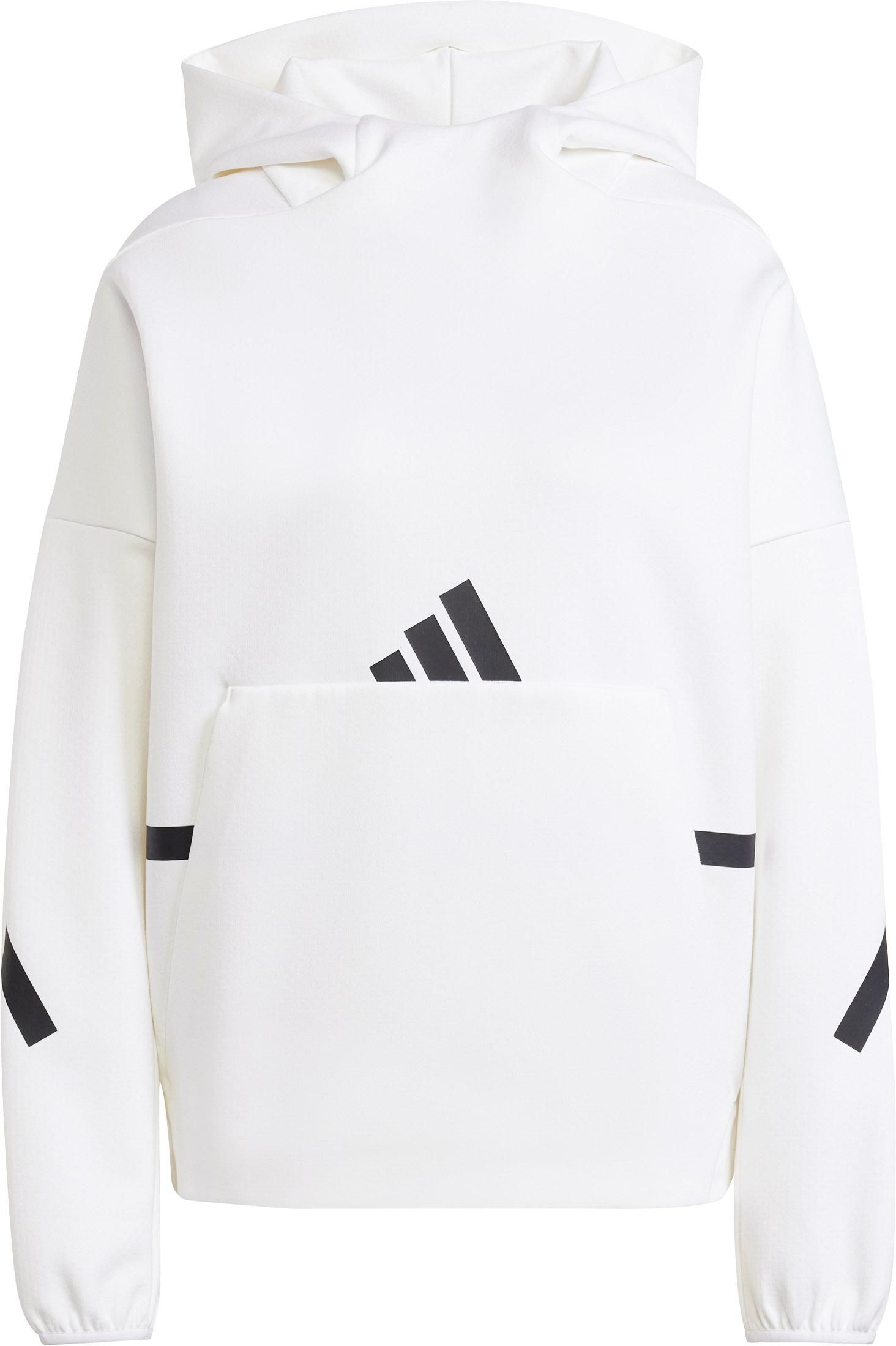Hoodie aus 3-lagigem, warm- und trockenhaltendem Doppelstrick-Gewebe; Kapuze mit hochabschließendem Kragen; 3 Bar-Logo; gummierter Linienprint; Kängurutasche; elastische Abschlüsse; lockere Passform; mit Recyclingmaterial hergestellt; Material 57% Polyester (recycelt), 43% Baumwolle.