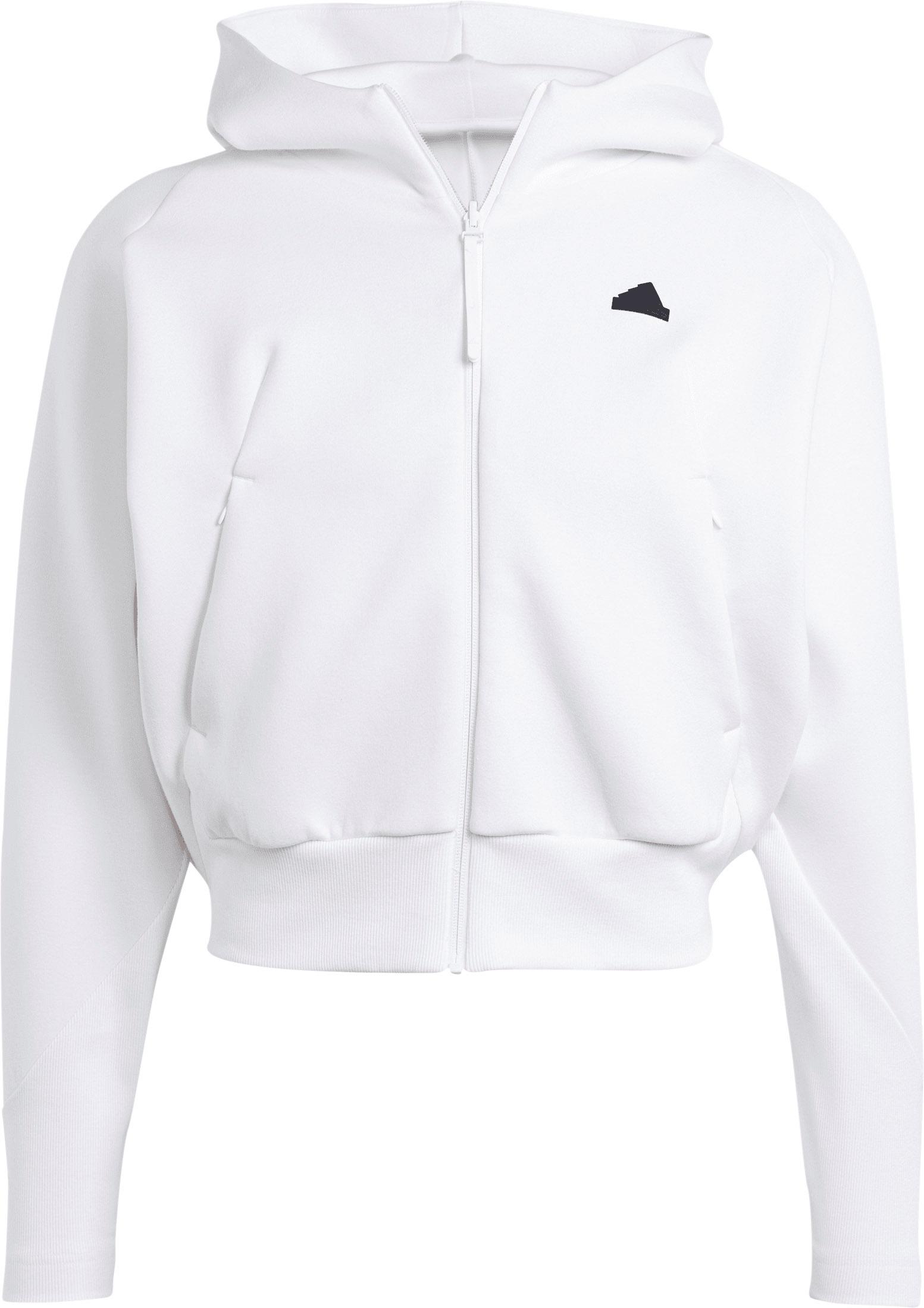 Lockere Trainingsjacke mit feuchtigkeitsableitender und schnelltrocknender AERO.RDY-Technologie; atmungsaktiv; strapazierfähig; mit Kapuze; durchgehender Frontreißverschluss; Logoelement auf Brusthöhe; 2 seitliche Reißverschlusstaschen vorne; breiter Saum und untere Ärmel mit Ripp-Einsätzen; Material 56% Baumwolle, 40% Polyester (recycelt), 4% Elastan.