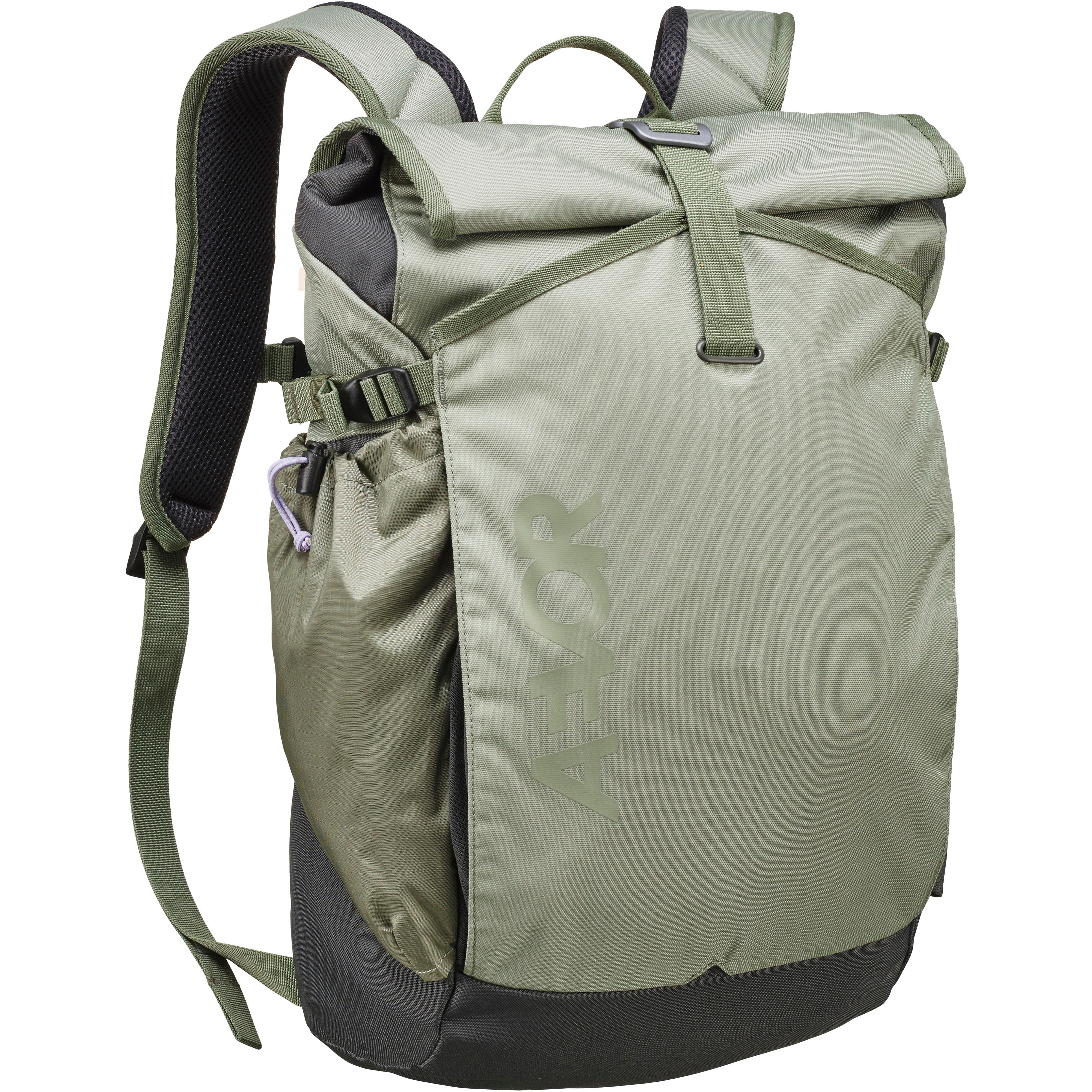 Daypack mit erweiterbarem Volumen von 20-32 l; wasserabweisend dank ohne PFC hergestellter Imprägnierung; Wassersäule: 1.500 mm; Rolltop-Verschluss mit Haken; geräumiges Hauptfach mit zusätzlichem Klettverschluss; durch Kompressionsriemen größenverstellbares Frontfach; gepolstertes Laptopfach mit Zugang über Reißverschlussöffnung am Rücken; Organizer-Innenfächer; sichere Reißverschlusstasche am Rücken; diverse Seitenfächer, z.B. für Trinkflaschen; Schulterträger und Rücken mit luftigem Mesh und Polsterung; verstellbarer Brustgurt; Tragegriff an der Oberseite; reflektierende Details; Maße (H/B/T): ca. 45 x 28 x 14 cm; Fair Wear; vegan; 100% recyceltes Außenmaterial; aus Polyester.