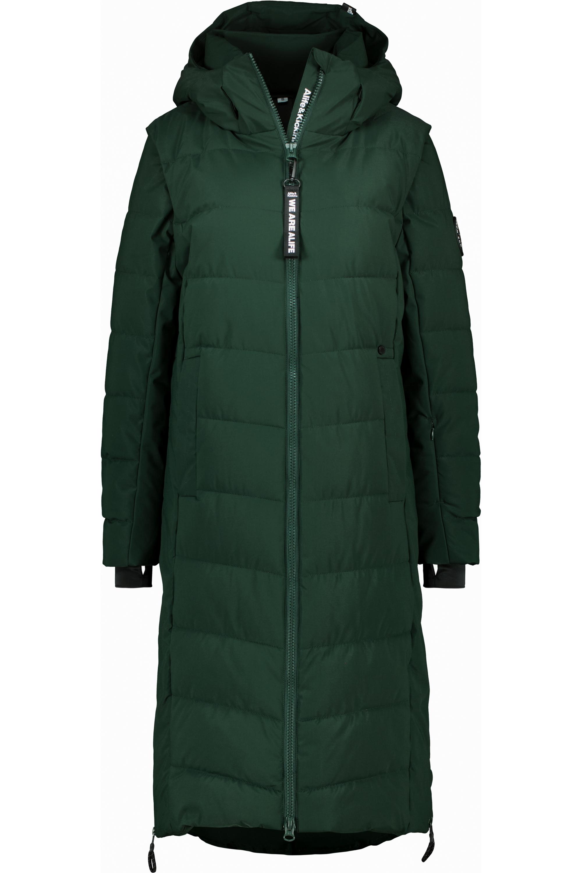 Dein neues Stylingwunder - Der neue Damenwintermantel Nellie von Alife and Kickin bietet Dir ungeahnte Möglichkeiten in Sachen Stil, Funktionalität und Einzigartigkeit. Sie ist nicht nur einfach eine lange Winterjacke im klassischen Sinn, sondern auch eine modische Weste, da die Ärmel der Damenjacke ganz einfach abnehmbar sind, wenn Du sie mal nicht benötigst. Dadurch bietet sie Dir die perfekte Vorraussetzung, die Eine ganz besondere Jacke für den Winter zu werden. Aber nicht nur das, auch mit Funktionalität und Komfort wird Dich der Damenmantel überraschen. Warm gefüttert in schmaler Passform zaubert Dir die Jacke eine tolle Figur. In den Fronttaschen, die mit Druckknopf geschlossen werden können, kannst Du wichtige Dinge sicher verstauen, die große verstellbare Kapuze und die mit Daumenlöchern versehenen Bündchen des Steppmantels versprechen Schutz bei eisigen Temperaturen. Seitliche Reißverschlüsse, die individuell verstellbar sind, bieten ungeahnte Beinfreiheit, wenn Du lange Spaziergänge im Winter unternimmst. Natürlich verfügt die Damenweste auch über markentypische Labedetails, die Deine eigene Individualität perfekt unterstreichen. NellyAK A von Alife and Kickin, eine lange Pufferjacke, die Dir gleichzeitig als Weste fungiert - was willst Du mehr?