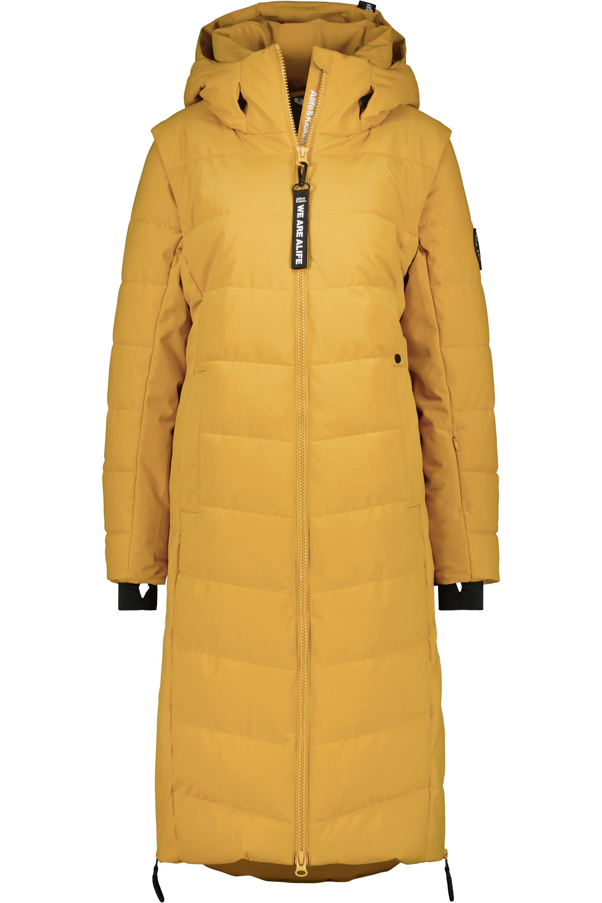 Dein neues Stylingwunder - Der neue Damenwintermantel Nellie von Alife and Kickin bietet Dir ungeahnte Möglichkeiten in Sachen Stil, Funktionalität und Einzigartigkeit. Sie ist nicht nur einfach eine lange Winterjacke im klassischen Sinn, sondern auch eine modische Weste, da die Ärmel der Damenjacke ganz einfach abnehmbar sind, wenn Du sie mal nicht benötigst. Dadurch bietet sie Dir die perfekte Vorraussetzung, die Eine ganz besondere Jacke für den Winter zu werden. Aber nicht nur das, auch mit Funktionalität und Komfort wird Dich der Damenmantel überraschen. Warm gefüttert in schmaler Passform zaubert Dir die Jacke eine tolle Figur. In den Fronttaschen, die mit Druckknopf geschlossen werden können, kannst Du wichtige Dinge sicher verstauen, die große verstellbare Kapuze und die mit Daumenlöchern versehenen Bündchen des Steppmantels versprechen Schutz bei eisigen Temperaturen. Seitliche Reißverschlüsse, die individuell verstellbar sind, bieten ungeahnte Beinfreiheit, wenn Du lange Spaziergänge im Winter unternimmst. Natürlich verfügt die Damenweste auch über markentypische Labedetails, die Deine eigene Individualität perfekt unterstreichen. NellyAK A von Alife and Kickin, eine lange Pufferjacke, die Dir gleichzeitig als Weste fungiert - was willst Du mehr?