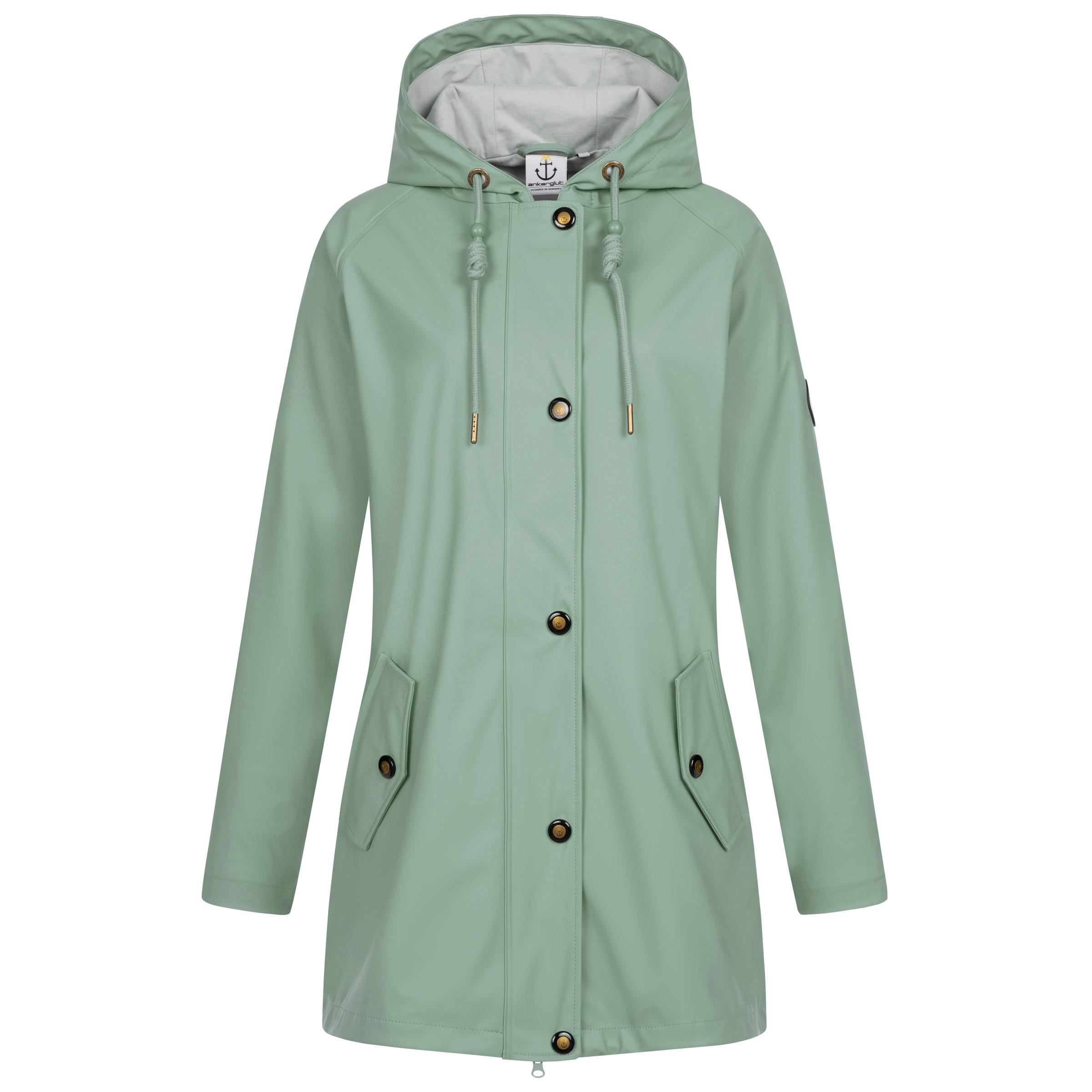 Hier kommt Farbe ins Spiel! Denn mit unserer ANKERGLUT Regenjacke "Ankergluthimmel" wird jeder Regentag zum farbenfrohen Glückstag. Die maritime Regenjacke im klassischen Stil eines Friesennerzes bietet eine attraktive Farbpalette für jede Stimmung. Das wasserdichte Außenmaterial ist an den Nähten verschweißt und bietet verlässlichen Regenschutz. Die Innenseite ist mit einem herrlich soften Jerseyfutter ausgestattet und sorgt für ein angenehmes Tragegefühl. Dank Taftfutter in den Ärmeln gleitest du ganz einfach in die Jacke, ohne dass Ärmel von Bluse oder Pullover nach oben rutschen. Der untere Teil des Ärmels ist ebenfalls mit dem Jerseyfutter versehen, wodurch du diesen umschlagen kannst. Damit erhält deine neue Lieblingsjacke einen ganz besonderen Akzent, den du garantiert lieben wirst. Die Kapuze ist mit einer Kordel versehen. Der Reißverschluss kann in beide Richtungen geöffnet werden. Zusätzlich wird er von einer Windschutzblende geschützt. Die beiden äußeren Eingrifftaschen können mit Druckknopf verschlossen werden. Eine innenliegende Brusttasche bietet ausreichend Platz für ein Smartphone. Die Weite der figurumspielenden Jacke kann mit einem elastischen Kordelzug am unteren Saum reguliert werden.