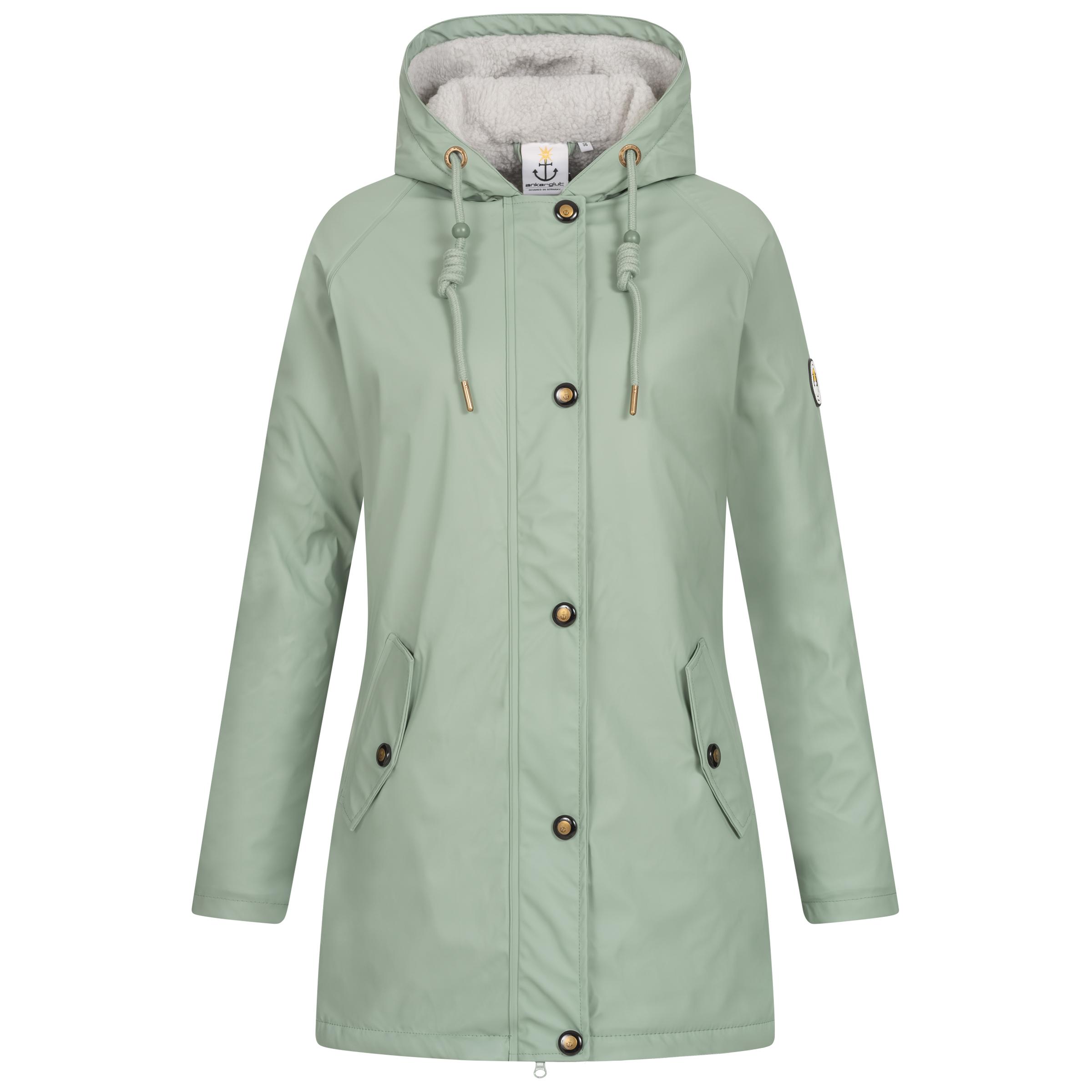 Cleaner Friesennerz mit Kuschelfleece für kalte Tage. Die maritime Regenjacke im klassischen Stil eines Friesennerzes bietet dank des 100 % wasserdichten Außenmaterials und verschweißten Nähten verlässlichen Regenschutz. Die Innenseite ist mit einem kuschelweichen Teddyfleece gefüttert, was hervorragend wärmt und für ein angenehmes Tragegefühl sorgt. Der Reißverschluss kann in beide Richtungen geöffnet werden. Zusätzlich wird er von einer Windschutzblende geschützt. Die beiden äußeren Eingrifftaschen sind mit Druckknopf verschließbar. Eine innenliegende Brusttasche bietet ausreichend Platz für ein Smartphone. Die Weite der figurumspielenden Jacke kann mit einem elastischen Kordelzug am unteren Saum reguliert werden.