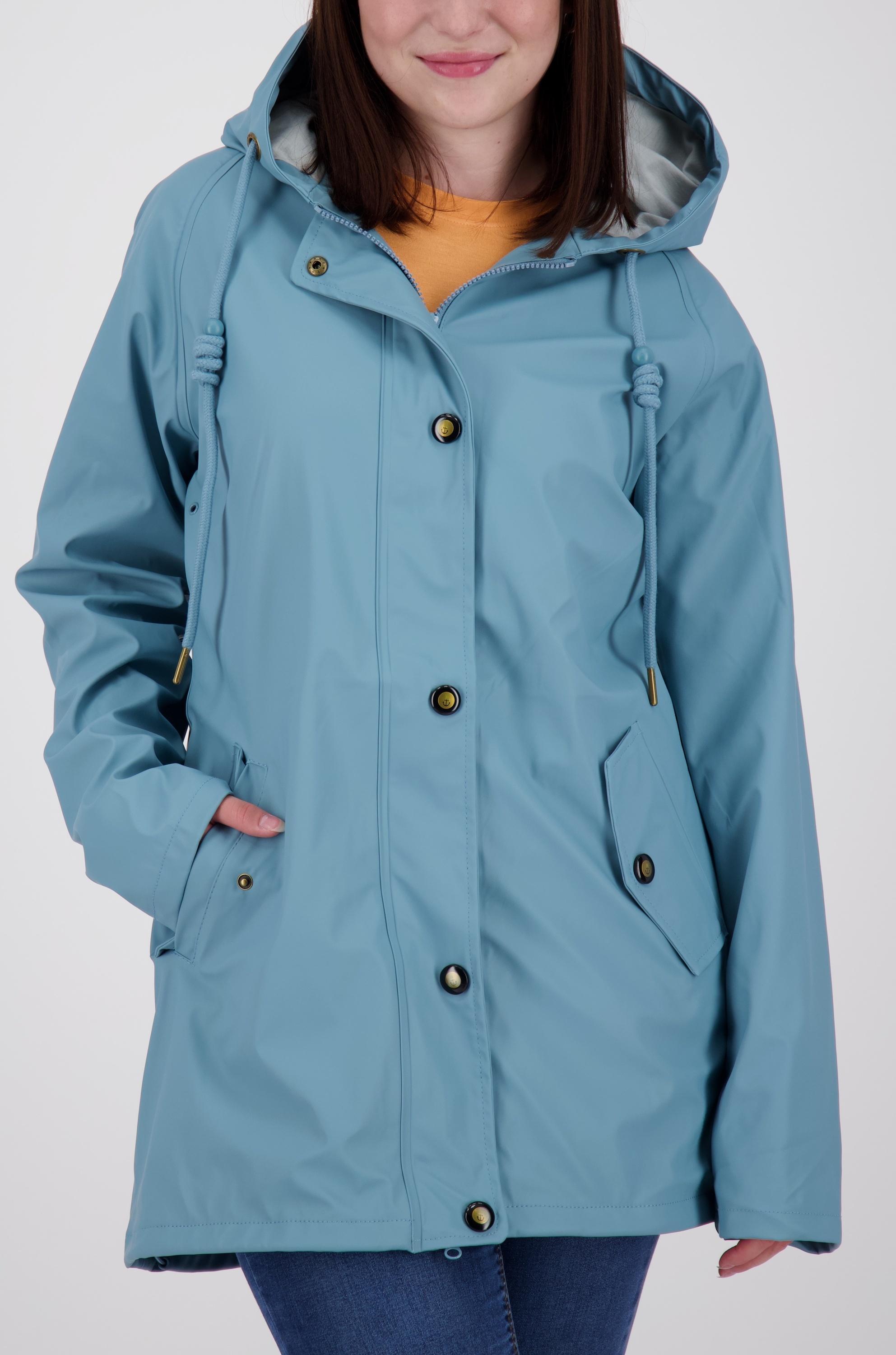 Cleaner Friesennerz mit Kuschelfleece für kalte Tage. Die maritime Regenjacke im klassischen Stil eines Friesennerzes bietet dank des 100 % wasserdichten Außenmaterials und verschweißten Nähten verlässlichen Regenschutz. Die Innenseite ist mit einem kuschelweichen Teddyfleece gefüttert, was hervorragend wärmt und für ein angenehmes Tragegefühl sorgt. Der Reißverschluss kann in beide Richtungen geöffnet werden. Zusätzlich wird er von einer Windschutzblende geschützt. Die beiden äußeren Eingrifftaschen sind mit Druckknopf verschließbar. Eine innenliegende Brusttasche bietet ausreichend Platz für ein Smartphone. Die Weite der figurumspielenden Jacke kann mit einem elastischen Kordelzug am unteren Saum reguliert werden.