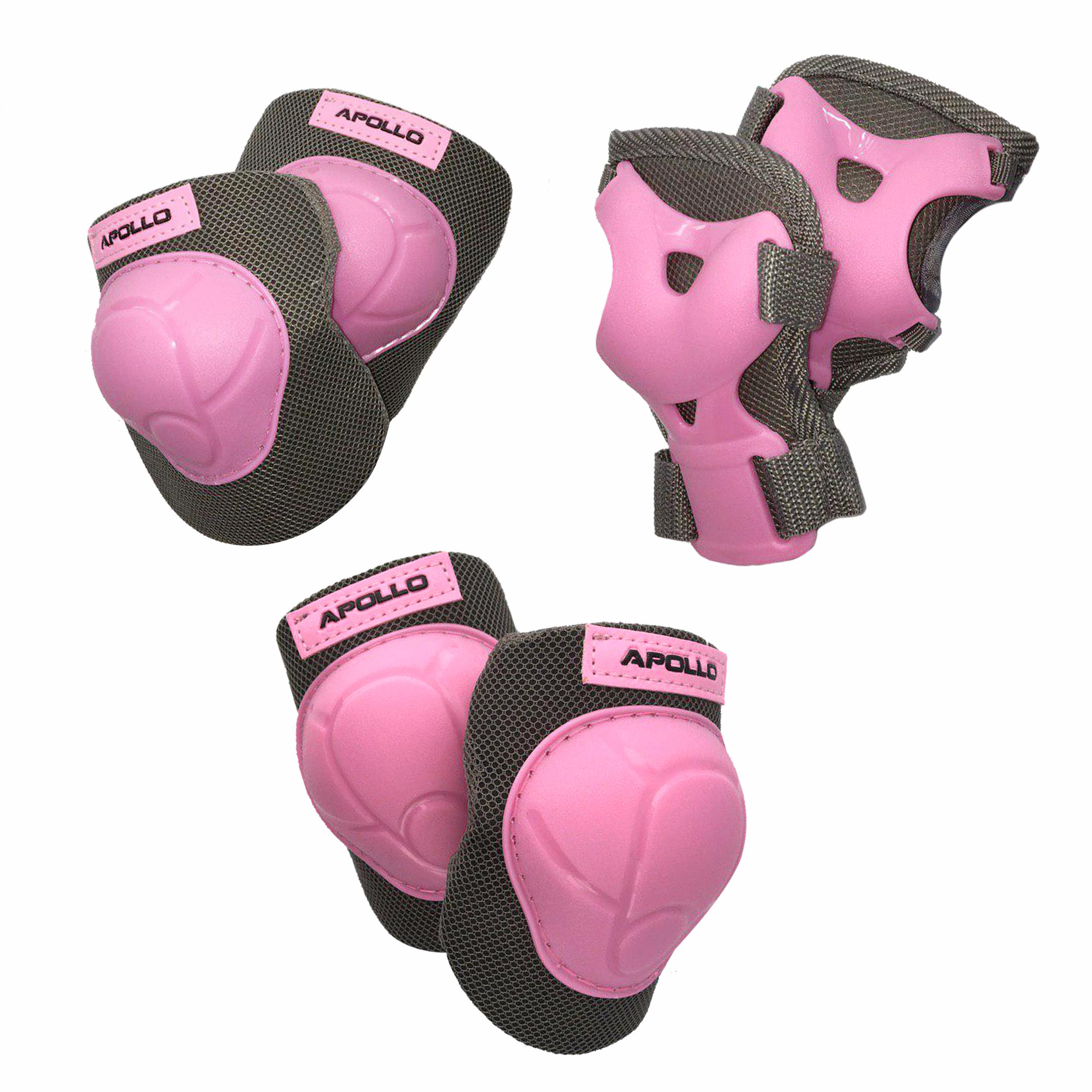 Unverzichtbar für alle Funsportarten: Das Kinder Schutzausrüstungsset von Apollo! Im Set sind 2 Handgelenkschoner, 2 Ellenbogenschoner und 2 Knieschoner enthalten, die sowohl Anfängern als auch Fortgeschrittenen Schutz bei Stürzen bieten. Auch wenn sich die Kids sicher und geübt fühlen, auf Inline-Skates, dem Skateboard, Longboard oder auf dem Bolzplatz mit dem BMX-Rad reicht schon eine kleine Unachtsamkeit, um einen Sturz herbeizuführen. Die abriebfesten Mesh-Polster und die ergonomisch geformten High Impact Stoßkappen der Protektoren wirken dämpfend. Das praktische an den Schonern der Kinder Schutzausrüstung von Apollo: Sie sind dank Klettverschlüssen und elastischer Bänder individuell größenverstellbar. • Set für Kinder • Mit Knieschoner, Ellenbogenschoner und Handgelenkschoner • Größe S: ca. 3 bis 6 Jahre, Körpergröße von ca. 100 bis 120cm • Größe M: ca. 6 bis 9 Jahre, Körpergröße von ca. 110 bis 140cm • Größe L: ca. 9 bis 12 Jahre, Körpergröße von ca. 130 bis 160cm • Leicht und robust • High Impact Stoßkappen • Mit Klettverschlüssen • Größenverstellbare elastische Bänder