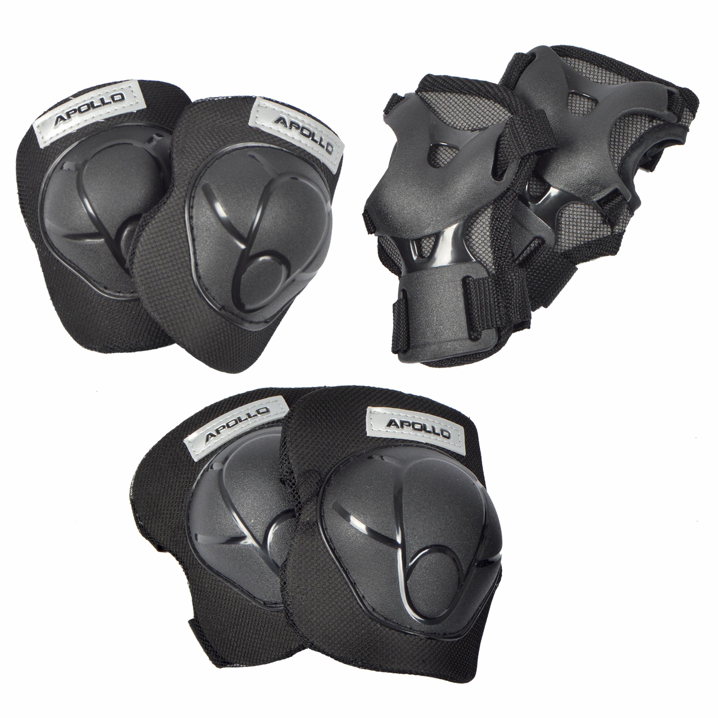 Unverzichtbar für alle Funsportarten: Das Kinder Schutzausrüstungsset von Apollo! Im Set sind 2 Handgelenkschoner, 2 Ellenbogenschoner und 2 Knieschoner enthalten, die sowohl Anfängern als auch Fortgeschrittenen Schutz bei Stürzen bieten. Auch wenn sich die Kids sicher und geübt fühlen, auf Inline-Skates, dem Skateboard, Longboard oder auf dem Bolzplatz mit dem BMX-Rad reicht schon eine kleine Unachtsamkeit, um einen Sturz herbeizuführen. Die abriebfesten Mesh-Polster und die ergonomisch geformten High Impact Stoßkappen der Protektoren wirken dämpfend. Das praktische an den Schonern der Kinder Schutzausrüstung von Apollo: Sie sind dank Klettverschlüssen und elastischer Bänder individuell größenverstellbar. • Set für Kinder • Mit Knieschoner, Ellenbogenschoner und Handgelenkschoner • Größe S: ca. 3 bis 6 Jahre, Körpergröße von ca. 100 bis 120cm • Größe M: ca. 6 bis 9 Jahre, Körpergröße von ca. 110 bis 140cm • Größe L: ca. 9 bis 12 Jahre, Körpergröße von ca. 130 bis 160cm • Leicht und robust • High Impact Stoßkappen • Mit Klettverschlüssen • Größenverstellbare elastische Bänder