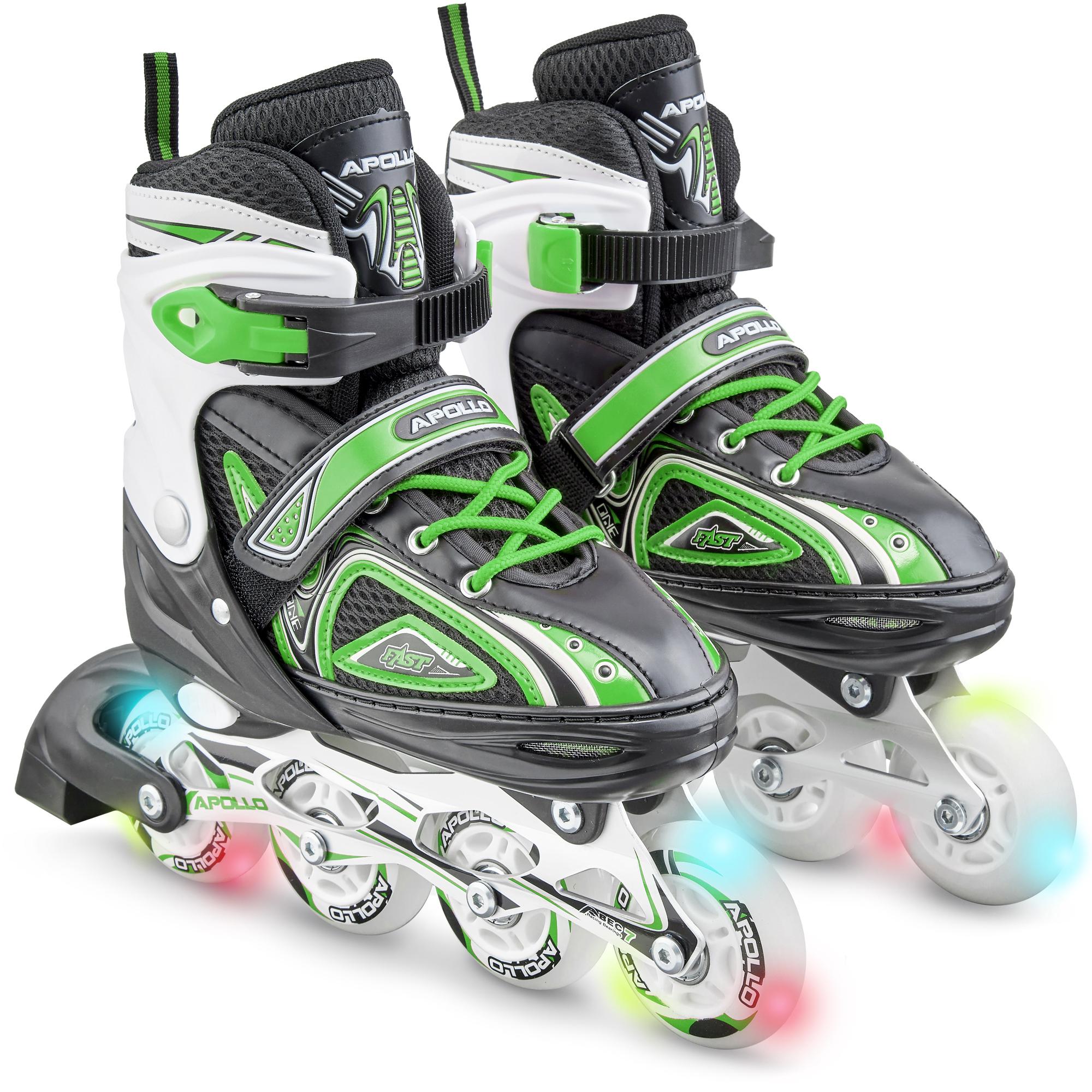 Sportbegeisterte Kids aufgepasst: Die Inliner »Super Blades X-Pro« von Apollo sind die optimalen Begleiter für schnittige Fahrten und hohe Geschwindigkeiten. Die Inline Skates sind perfekt für Anfänger geeignet und bieten einen schönen Einstieg in die Welt der Inlineskates. Die Inliner für Kinder sind flexibel an den Fuß anpassbar und durch die innovative Verschlusskombination aus Rasterverschluss, Sicherheitsschnalle, Klettverschluss und Schnürsenkel geben sie den optimalen Halt. Das coole Design der Kinder Rollschuhe wird durch die Farbgestaltung und 2 LED Räder unterstrichen – so wird man zum absoluten Hingucker beim Wettrennen mit den Freunden oder bei der sonntäglichen Ausfahrt mit der Familie. Hochwertige High-Rebound-Rollen mit einem Durchmesser von Ø 70 mm sowie einer Rollenhärte 82A und ABEC 7 Kugellager sorgen bei den Rollerskates Damen für grenzenlosen Spaß. Die Inliner »Super Blades X-Pro« von Apollo sind ein tolles Must-Have für aktive Kinder und wachsen über 4 Schuhgrößen mit den Füßen mit. Daher passen die Inline Skates Damen ebenso wie Kindern bestens.