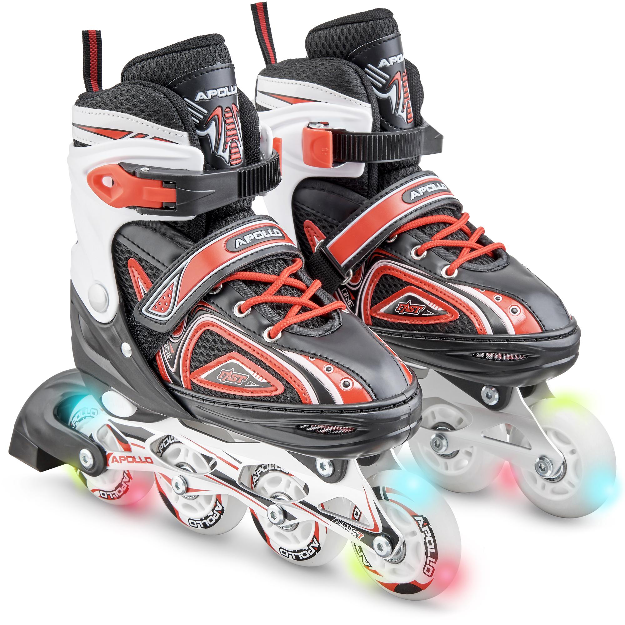 • Apollo Super Blades X Pro begeistern durch cooles Design, LED Wheels und verfügen über optimale Fahreigenschaften durch hochwertige High-Rebound-Rollen und ABEC 7 Kugellager.
