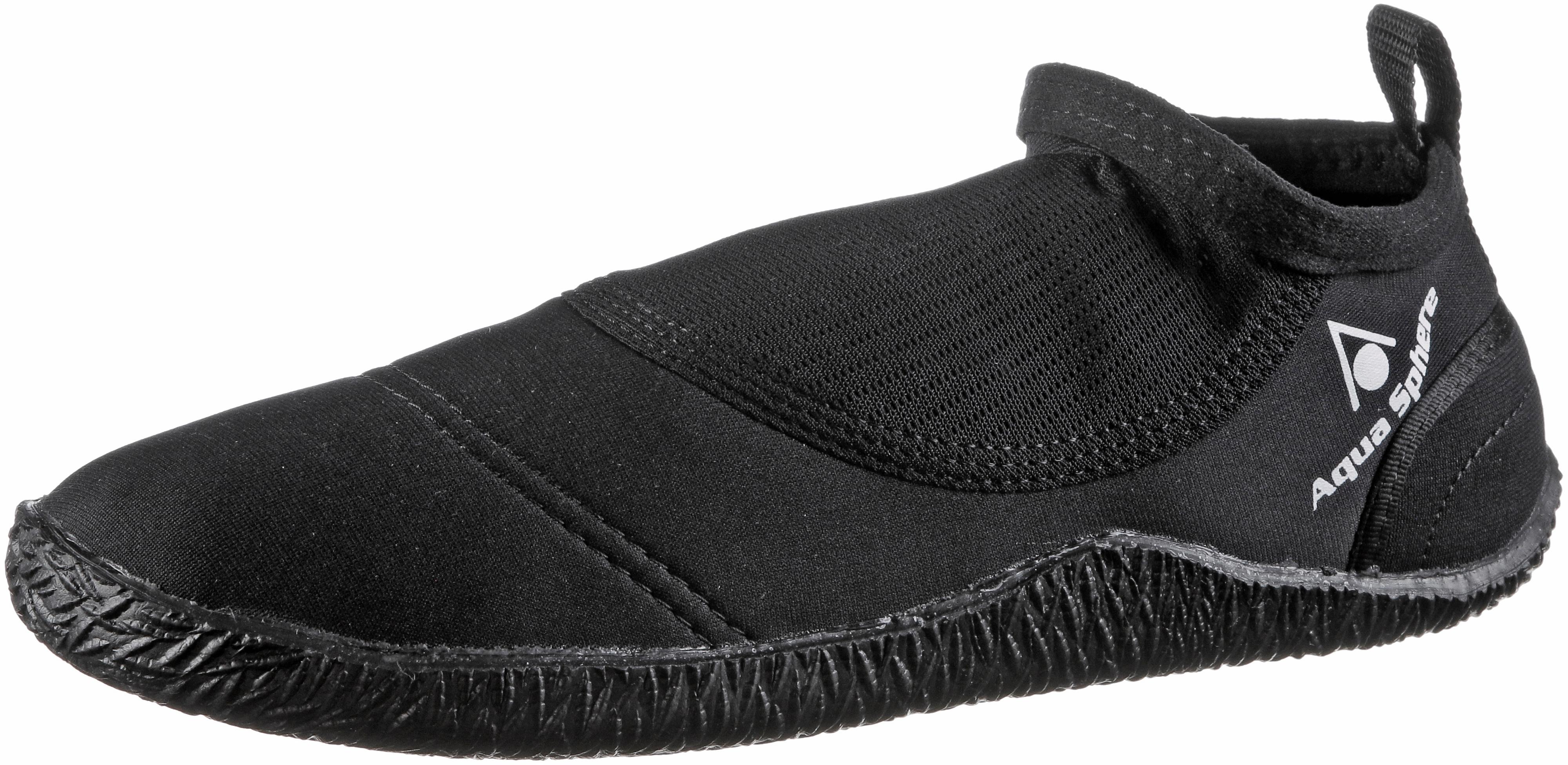 AQUASPHERE BS BEACHWALKER. Schnell trocknende Neoprenschuhe, welche im Wasser angelassen werden können und so vor Steinen und Seeigeln schützen; atmungsaktive Mesh-Einsätze; Zuglasche für leichtes An- und Ausziehen; rutschfeste Außensohle; Material Textil und Neopren.