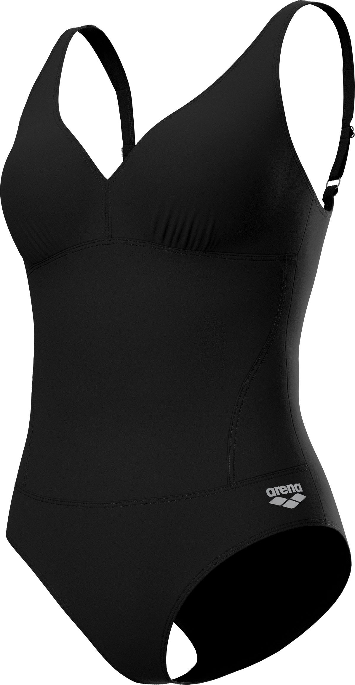 Leichter Badeanzug aus figurformendem Gewebe; verstellbare Träger; brustformender V-Ausschnitt mit Raffungen; schmales Unterbrustband; großer Rückenausschnitt; Markendetail auf der Seite; Material I 68% Polyamid, 32% Elastan, Material II 100% Polyester, Material III 86% Polyester, 14% Elastan.