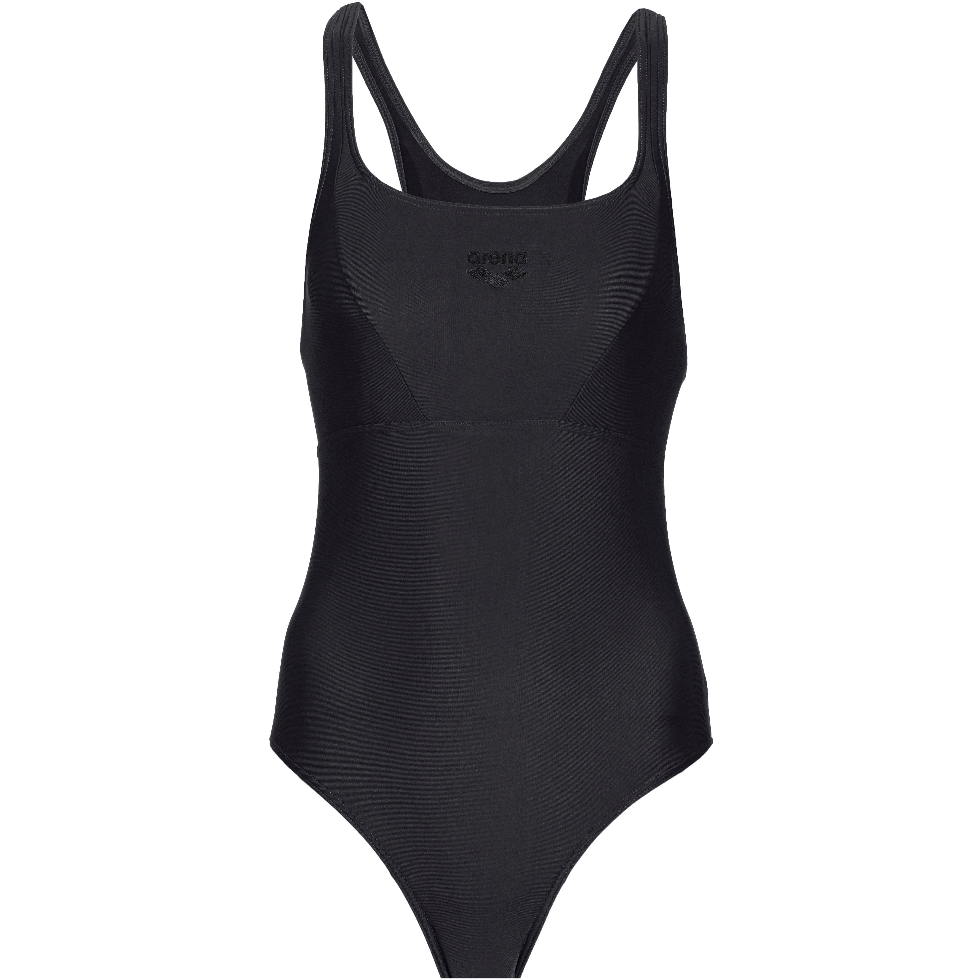 Badeanzug aus chlorresistentem, schnelltrocknendem 4-Wege-Stretch-Material; mit normalen Trägern und Ringerrücken; formgebende Nähte im Brustbereich; kleiner Labelprint; Material 82% Polyester (recycelt), 18% Elastan.