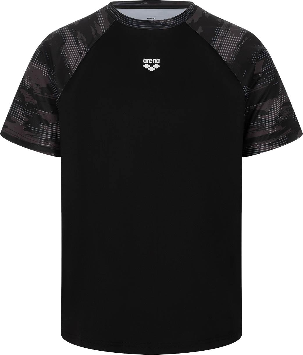 Elastisches Funktionsshirt mit schnelltrocknender Eigenschaft dank Dry Skin®-Technologie; Rundhalsausschnitt; Frontlogo; Raglanärmel und Rückseite im Camouflage-Design; mit Recyclingmaterial hergestellt; Material 88% Polyester (recycelt), 12% Elastan.