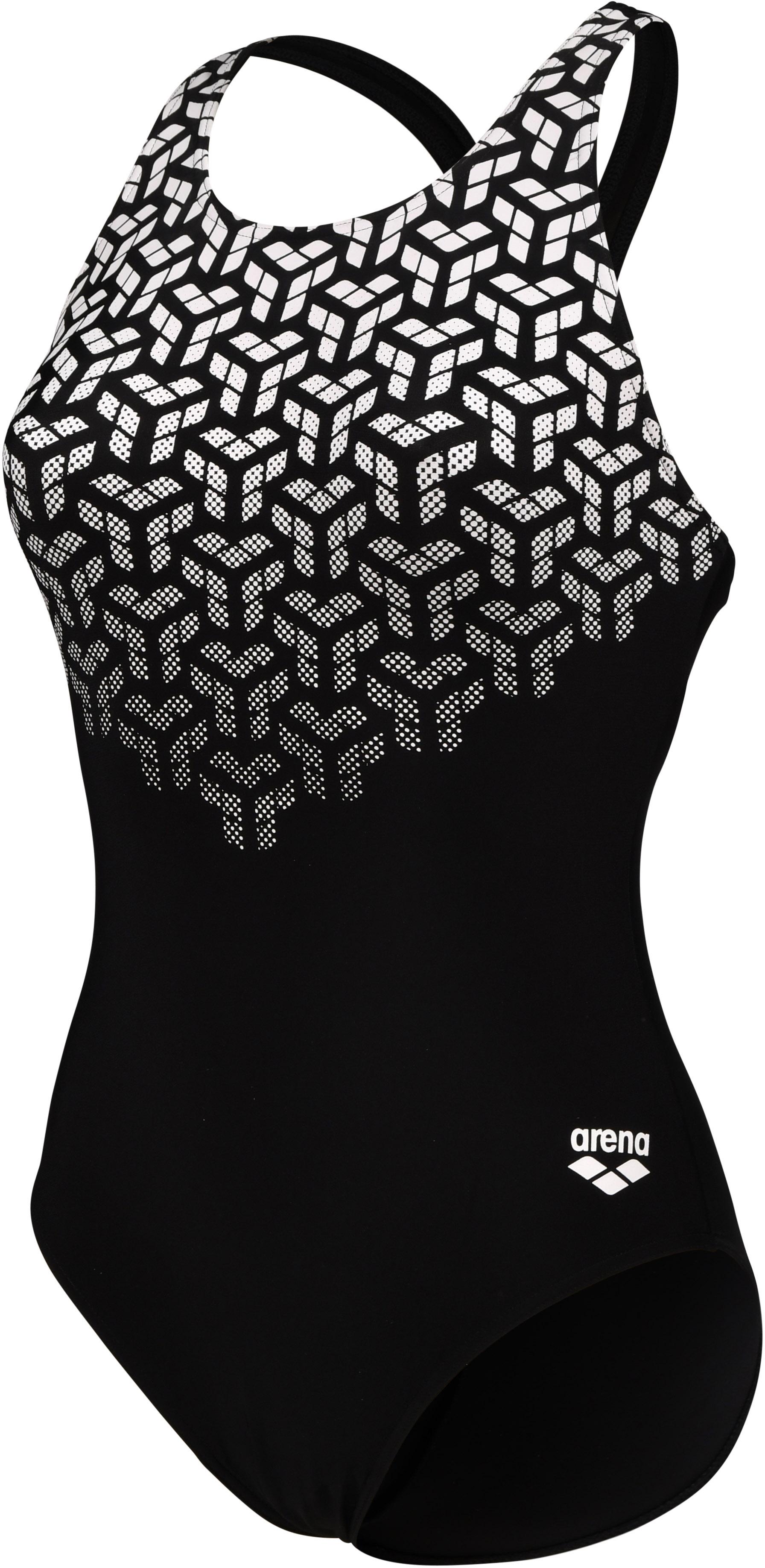 Badeanzug mit grafischem Muster; runder Halsausschnitt; normale Träger, großes Cut-out am Rücken; mittelhohe Beinausschnitte; Logodetail an der Hüfte; elastisch und schnelltrocknend; Material 80% Polyamid, 20% Elastan.