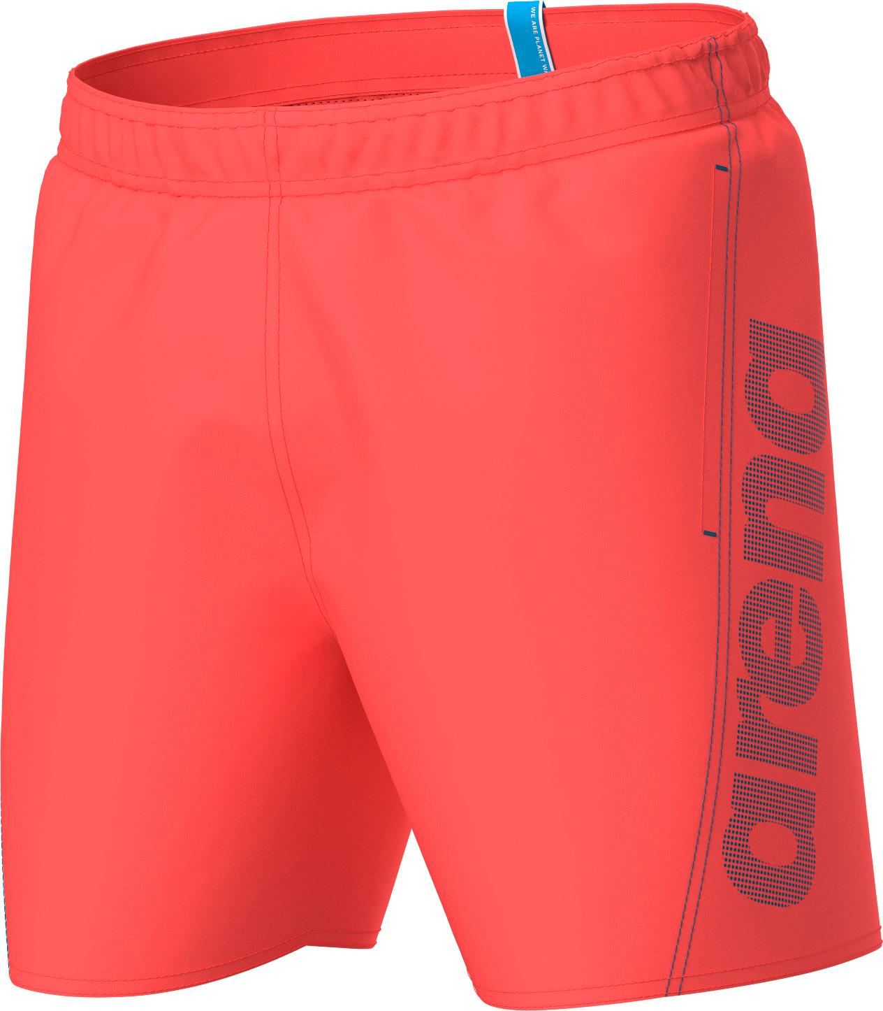 Badeshorts mit elastischem Bund und innen liegendem Kordelzug; 2 seitliche Eingrifftaschen; großer Markenschriftzug entlang der Seite; kleines Logodetail; Innenslip; Material 100% Polyester (recycelt).