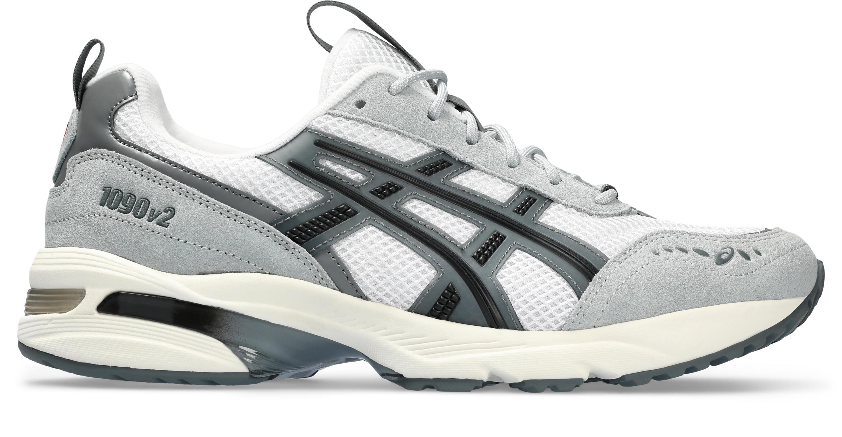 Laufschuhe in neu aufgearbeitetem Retro-Design; Obermaterial aus atmungsaktivem Mesh mit Überzügen aus Veloursleder; klassische Schnürung; Zuglasche an der Ferse; Logodetails; weich gepolsterter Schaft; normale Schuhweite; Textilfutter; Zwischensohle mit GEL®-Technologie im Rückfußbereich für eine verbesserte Stoßabsorption und ein sanfteres Gefühl beim Fußauftritt; profilierte Gummi-Außensohle; Pronation neutral.