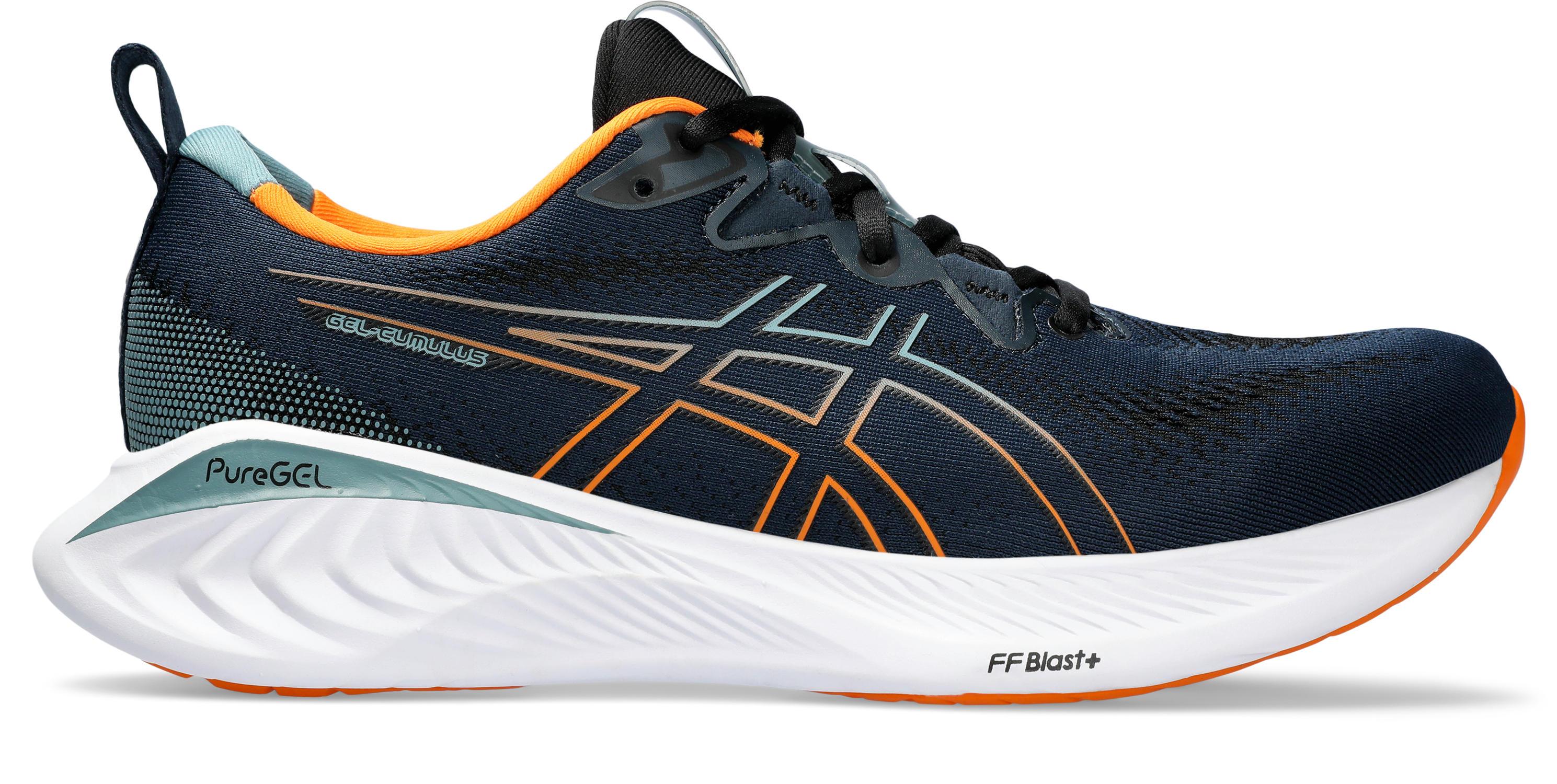 Allround-Laufschuhe mit einem besonders weichen Tragegefühl; Obermaterial aus speziell gefertigtem Jacquard-Mesh für mehr Atmungsaktivität; normale Schnürung; Zuglasche an der Ferse; OrthoLite™-Einlegesohle; Mittelsohle mit PureGEL™-Technologie; FF Blast™ Plus-Dämpfung für eine gute Stoßabsorption bei niedrigem Gewicht; AHAR™-Außensohle aus abriebfestem Gummi; geeignet für Normalpronierer; ideal für Straße und Park sowie Wald- und Feldwege; normale Schuhweite; Sprengung: ca. 8 mm; enthält Recyclingmaterial.