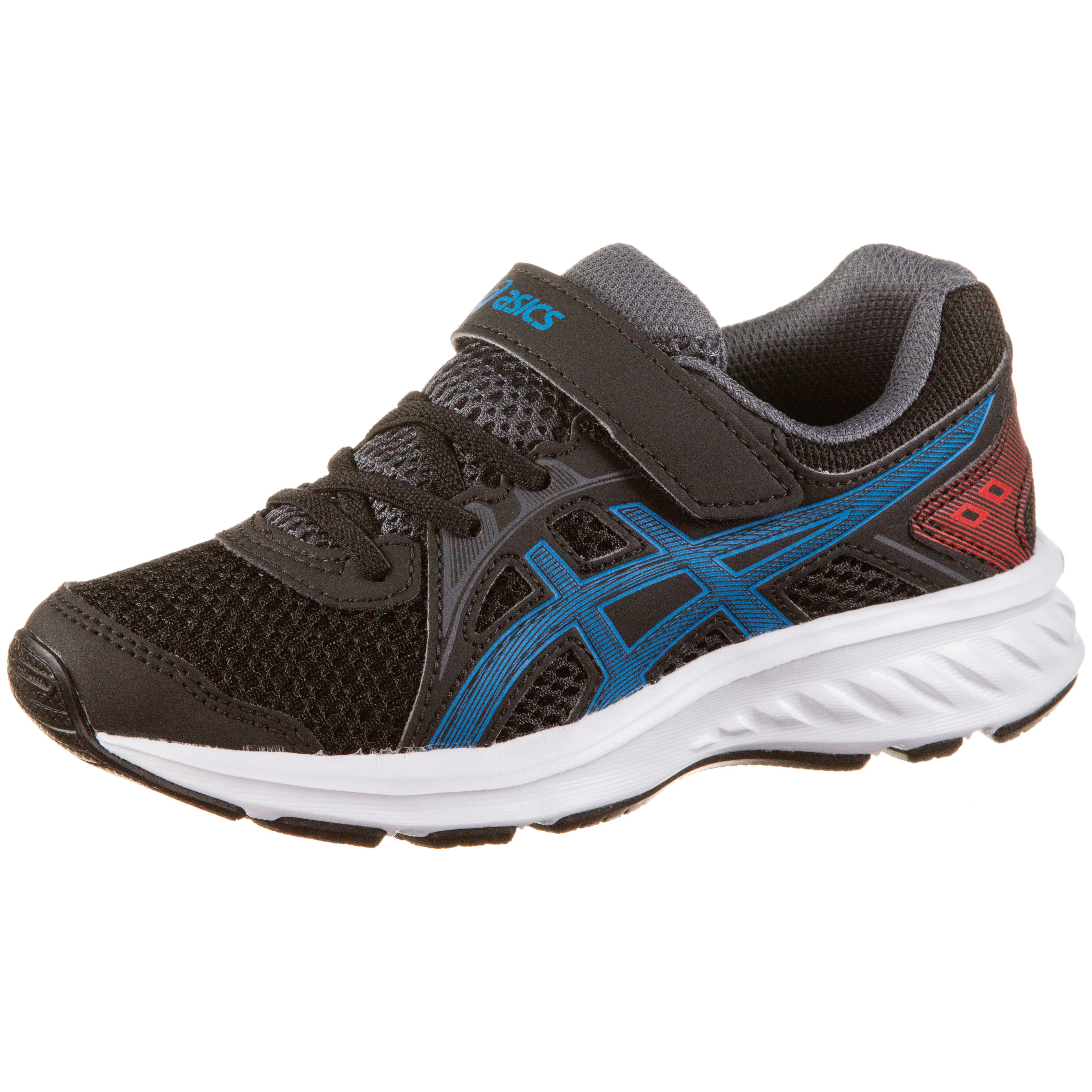 ASICS JOLT 2 PS. Kinderlaufschuhe aus atmungsaktivem Mesh-Obermaterial; mit Klett- und Schnürverschluss; Mesh-Innensohle; Einlegesohle und Mittelsohle aus EVA; integrierte, geformte Fersenkappe; strapazierfähige Außensohle aus Gummi.