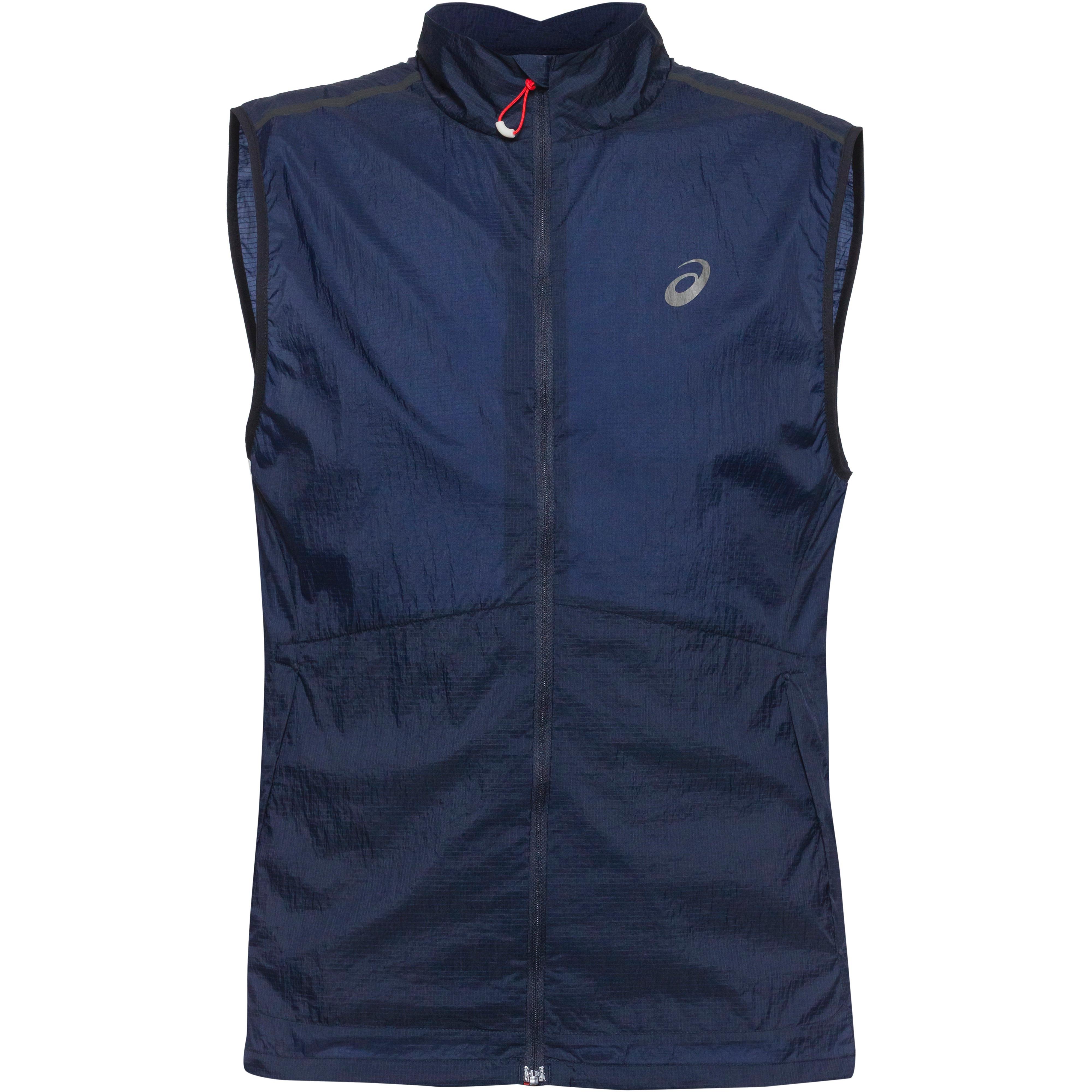 Laufweste aus sehr leichtem Material; Stehkragen; durchgehender, zentraler Reißverschluss; 2 Seitentaschen mit Druckknöpfen und integrierter sicherer Handytasche; Rückentasche mit Reißverschluss, in der die Weste kompakt verstaut werden kann; Saum mit Kordelzug weitenregulierbar; reflektierende Details; Material 100% Polyamid.