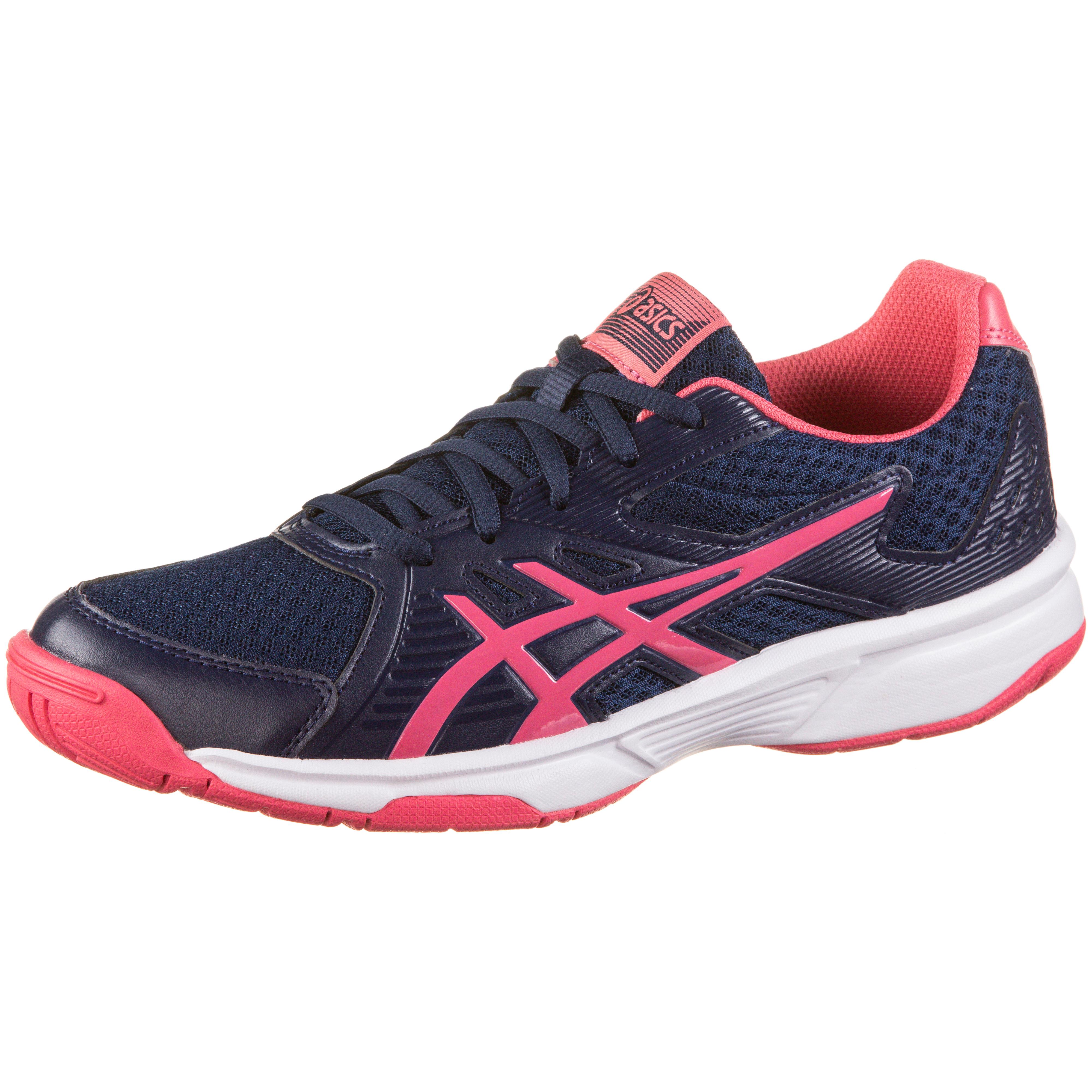 ASICS UPCOURT 3. Multifunktionsschuhe im modernen Design; Obermaterial aus Textil mit Synthetik-Overlays; klassische Schnürung; gepolsterter Schaft; Textilfutter; herausnehmbare Einlegesohle; EVA-Mittelsohle; verstärkter Zehenbereich; nicht abfärbende, leicht profilierte Hallen-Außensohle.