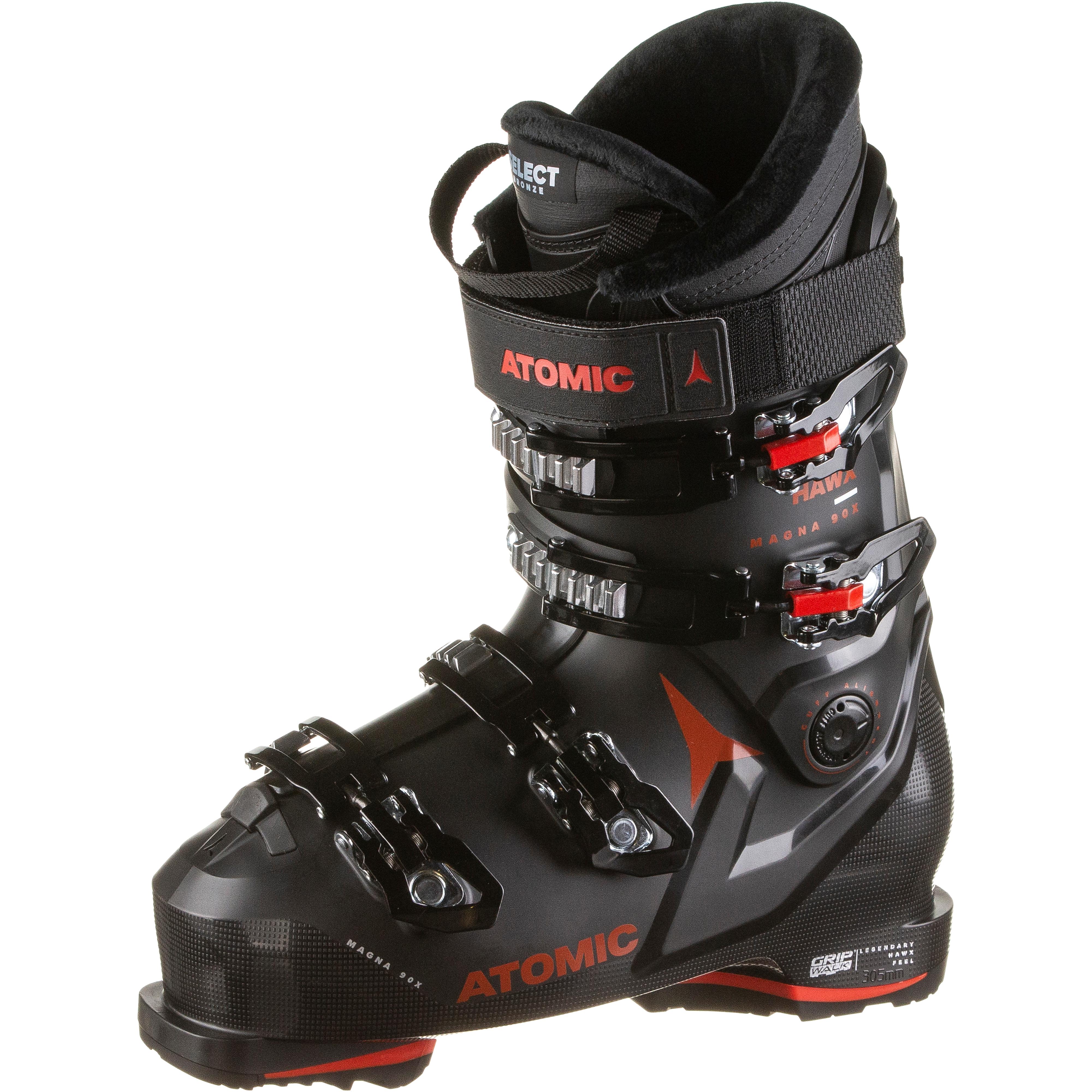 Alpin-Skischuhe auch für Einsteiger geeignet; Atomic Bronze-Innenschuh mit hochfunktioneller 3M Thinsulate™-Isolierung für höchsten Kälteschutz; Power Shift zum Einstellen des Vorlagewinkels; perfekte Passform durch Legendary Hawx Feel; mikrometrisch einstellbare 6000er-Alu-Schnallen; 40 mm Velcro Strap; Außensohle mit austauschbaren Dual Density Cantable Grip Pads; GripWalk-kompatibel; Leistenbreite: 102 mm (breit); Flex: 90 (mittel).