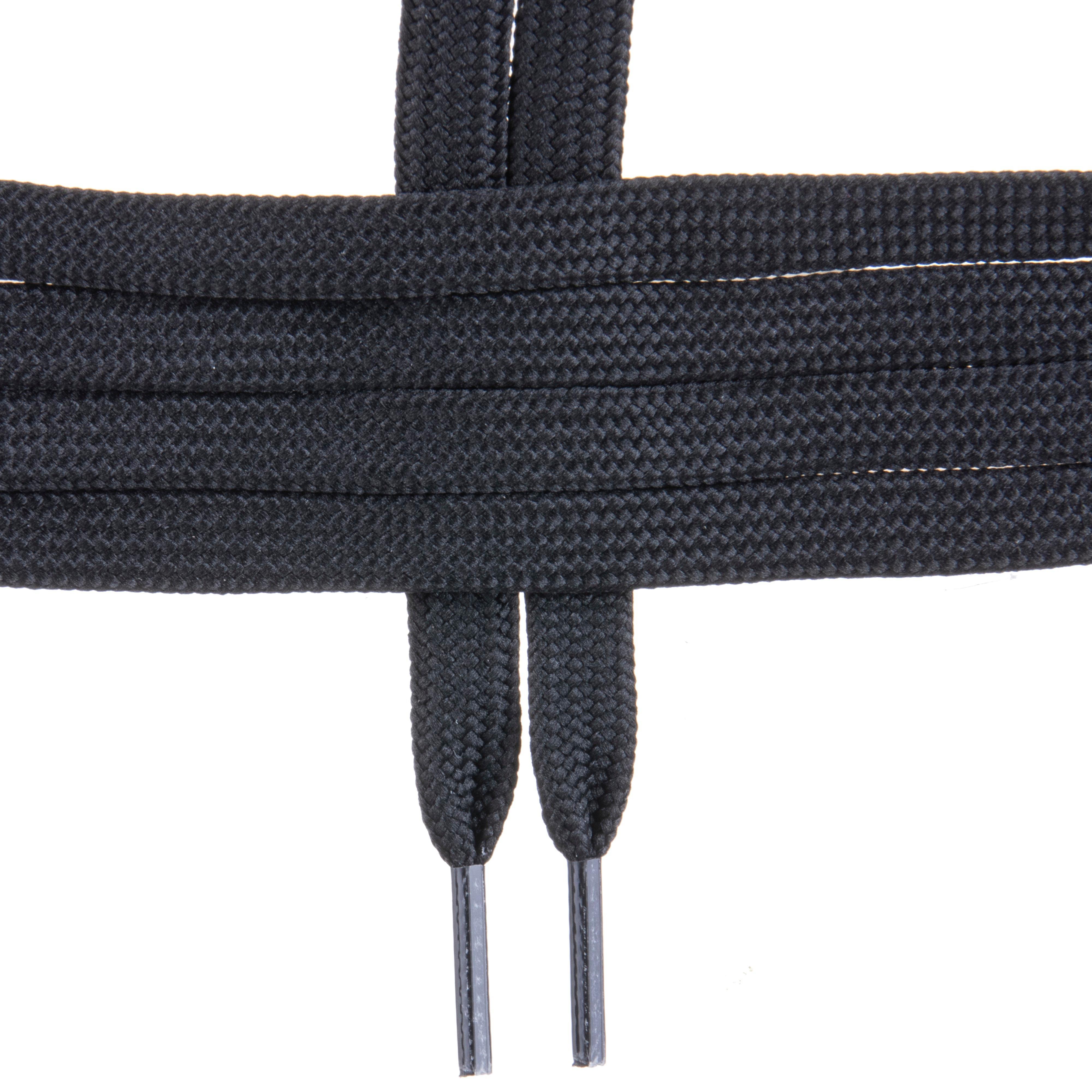 1 Paar flache Schuhbänder mit einer Länge von ca. 90 cm; strapazierfähig; Made in Germany. Material 100% Polyester.