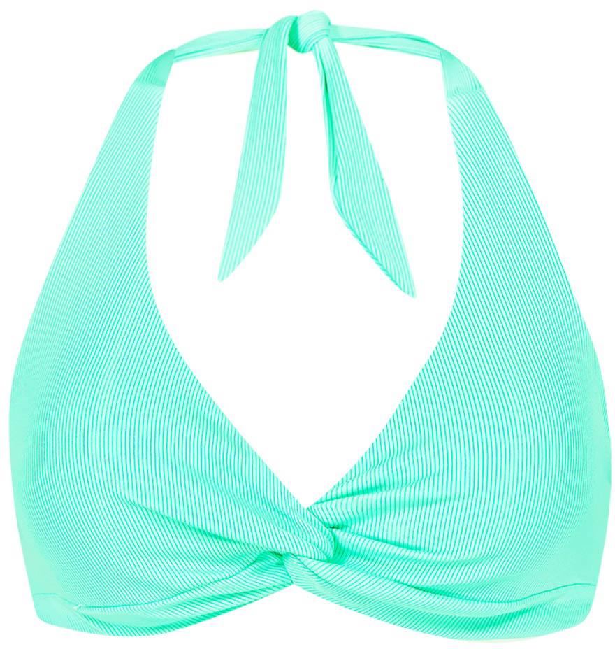 Neckholder-Bikini-Oberteil mit Twist-Detail zwischen den Cups; strukturiertes Gewebe; etwas breitere Träger zum Binden; herausnehmbare Pads; Material 94% Polyamid, 6% Elastan.