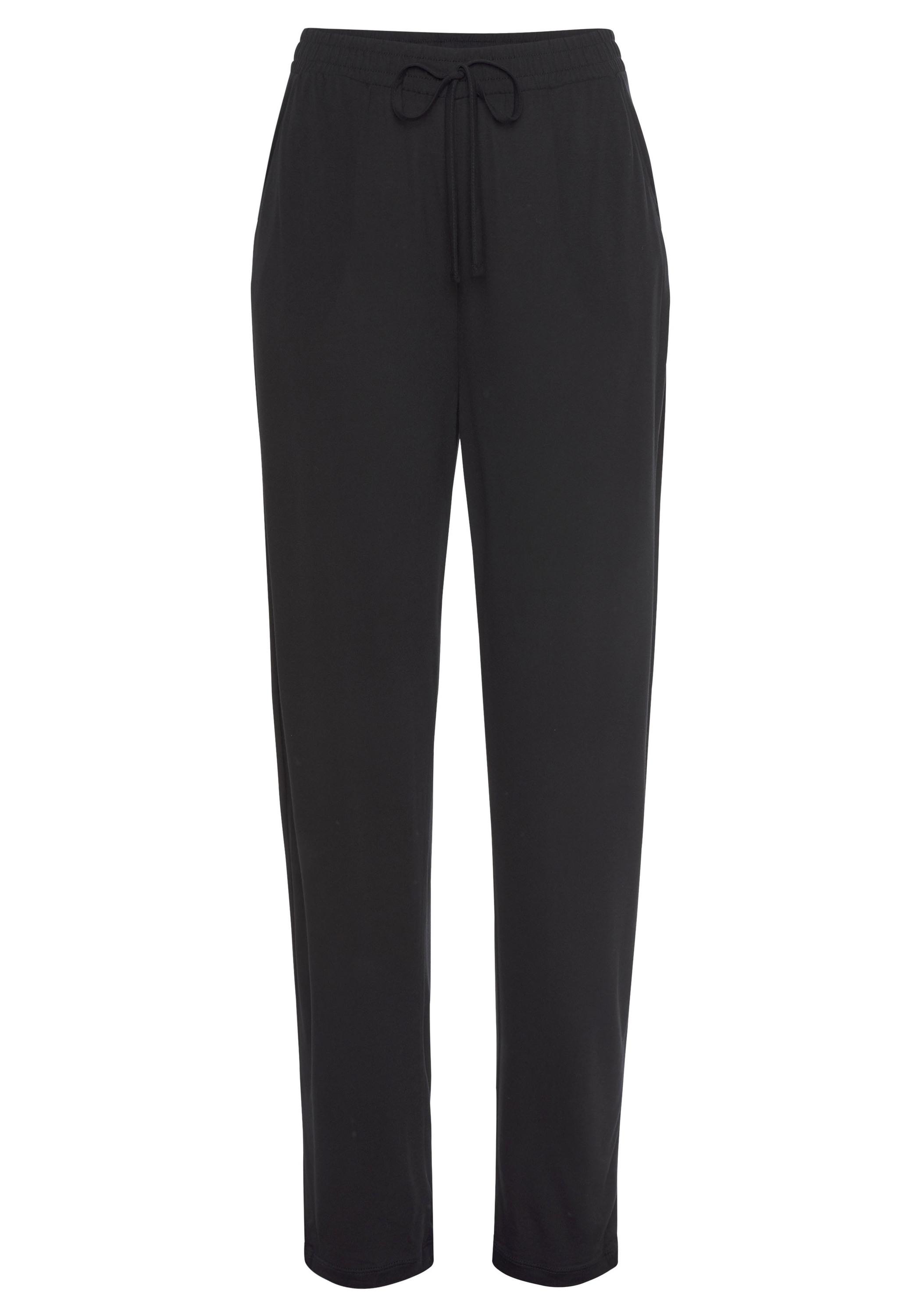 Jerseyhose mit schmal zulaufendem Bein. Mit elastischem Gummizug am Bund, seitlichen Eingrifftaschen. Lässige Passform. Weich fließende Qualität aus 100% Viskose.