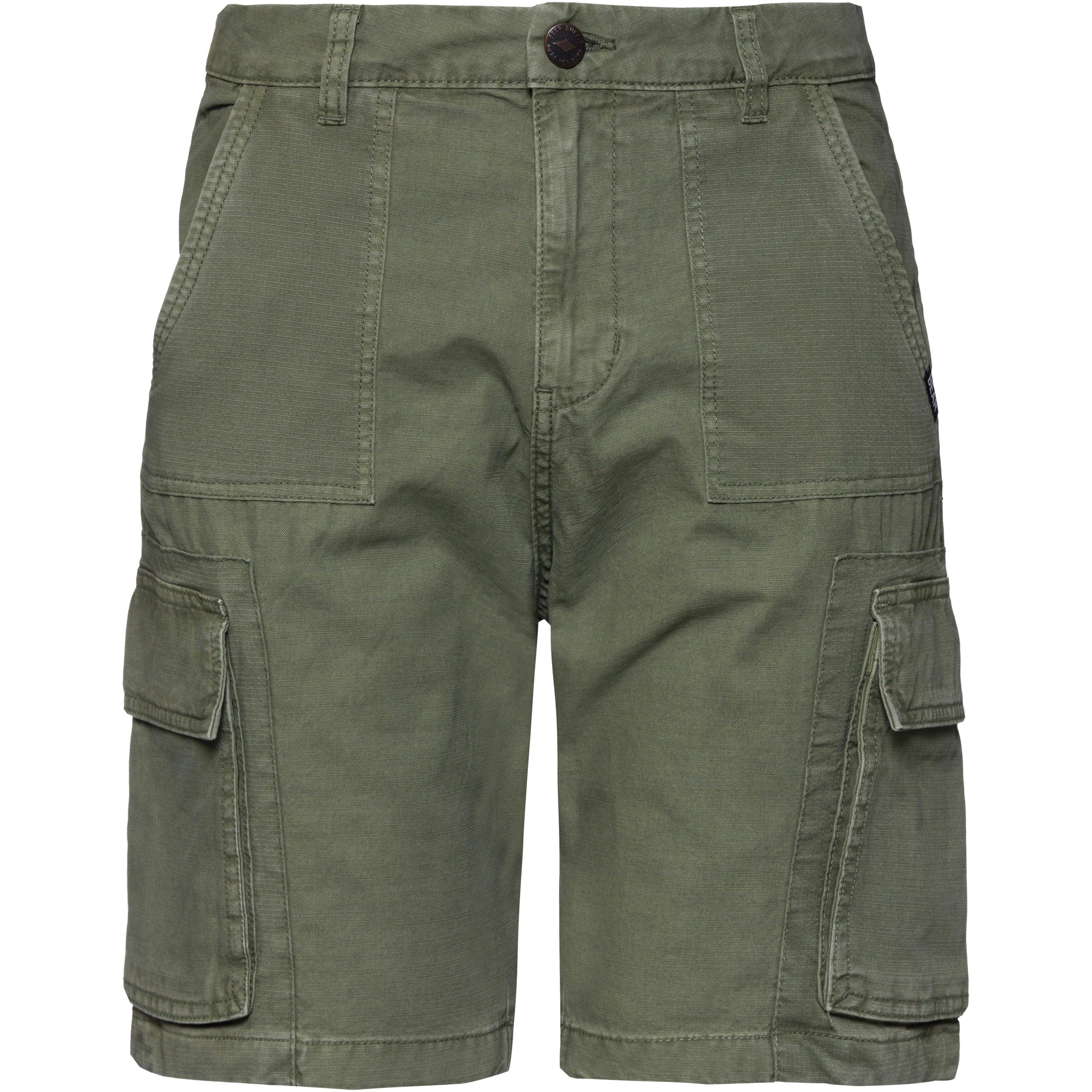 Cargoshorts aus strapazierfähigem Gewebe; klassischer Bund mit Gürtelschlaufen; diverse Taschen; Seitenlänge: ca. 49 cm (Gr. 48); Material 100% Baumwolle.