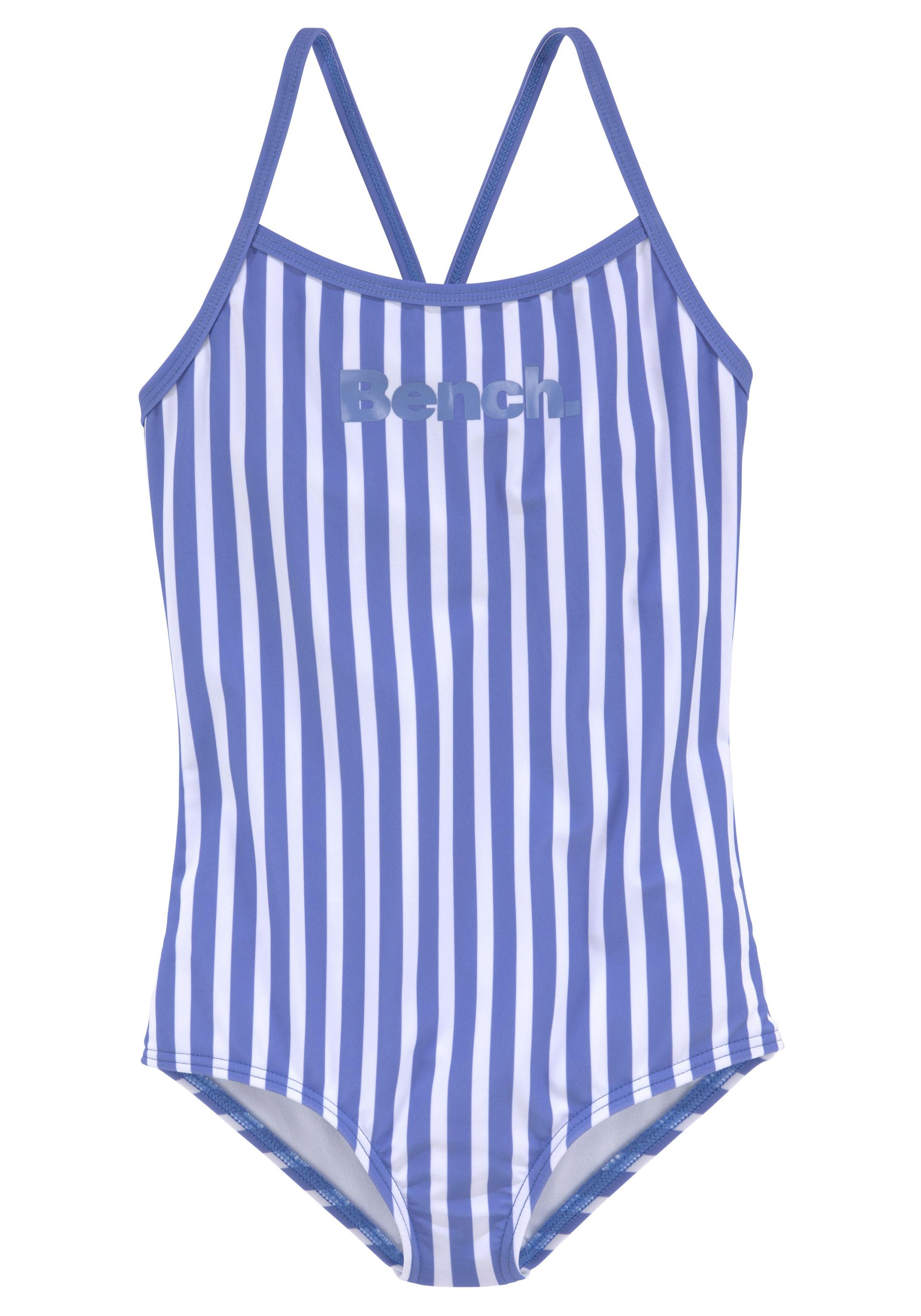 Sportlicher Badeanzug von Bench im maritimem Streifen-Look. Cooler Racerback und klassische Passform. Elastisches Material mit recyceltem Polyamid.