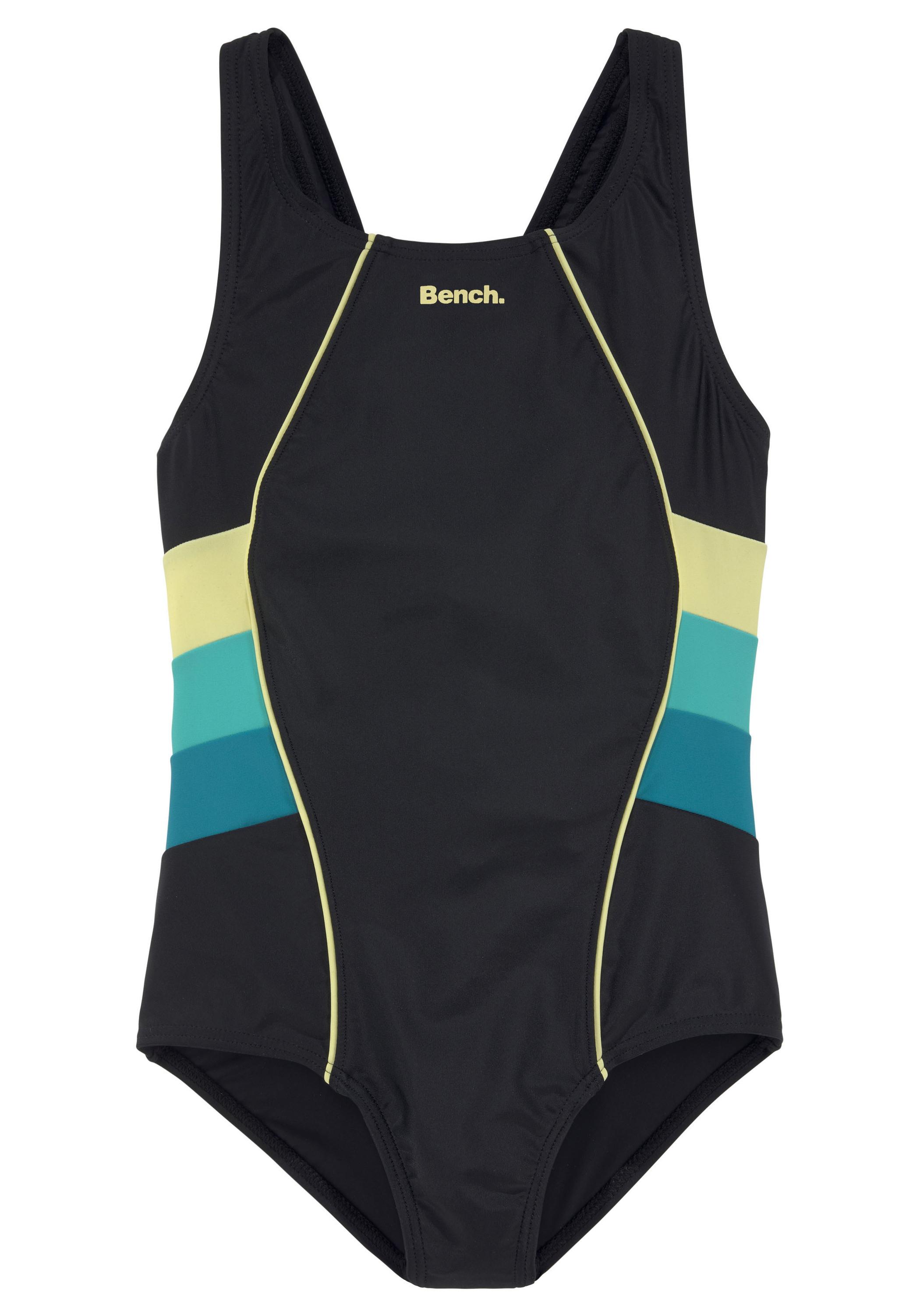 Sportlicher Badeanzug von Bench im auffälligen Kontrastdesign. Etwas breitere Träger und Racerback für guten Sitz. Elastisches Material mit recyceltem Polyamid.