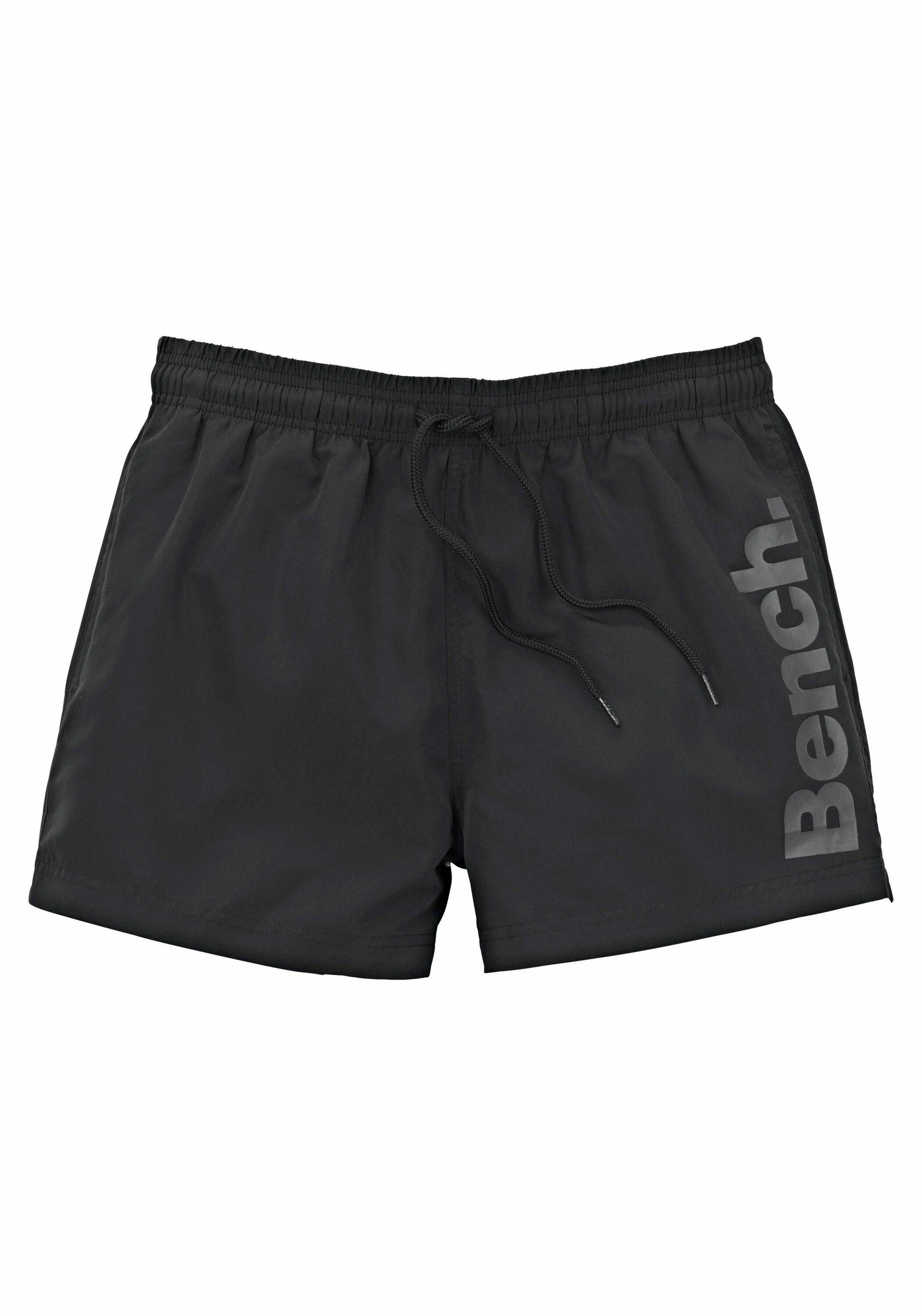 Badeshorts von BENCH – dem Kultlabel für sportive Trendmode. Klassische Form mit Logo-Schrifzug seitlich. Elastischer Bund mit Außenkordel. Seitliche Eingrifftaschen und Gesäßtasche mit Klettverschluss. Innenslip mit kleiner Innentasche. Seitenlänge in Gr. M ca. 35 cm. Softe Microfaser-Qualität.