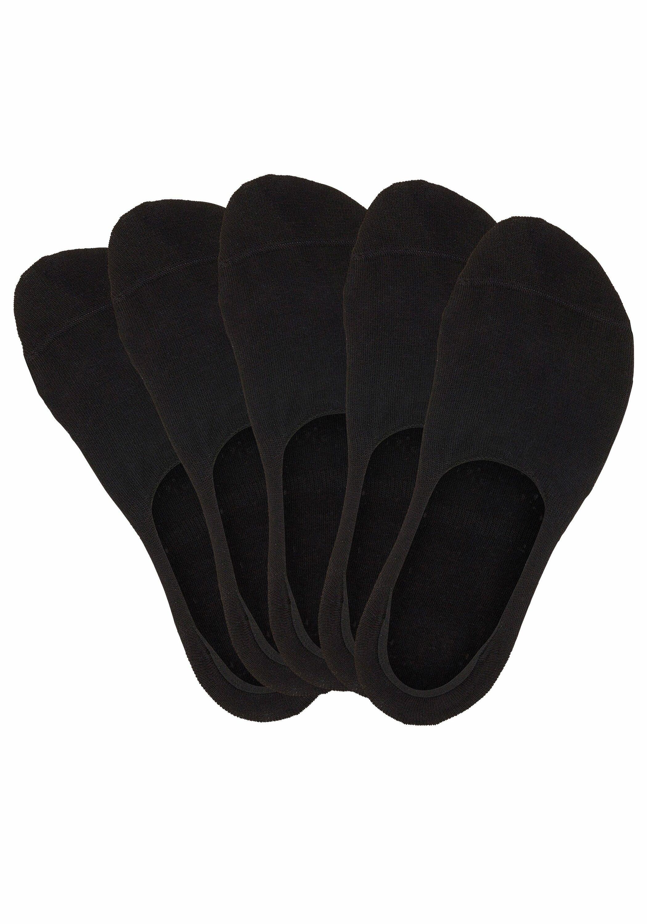 Praktisches 5er-Set. geschlossene Füßlinge in unterschiedlichen Farbstellungen. Füßlinge bedecken mehr als nur Sohle, Zehen und Ferse und enden weit unterhalb des Knöchels. Super geeignet für weit ausgeschnittene Sportschuhe oder moderne Sneakers.