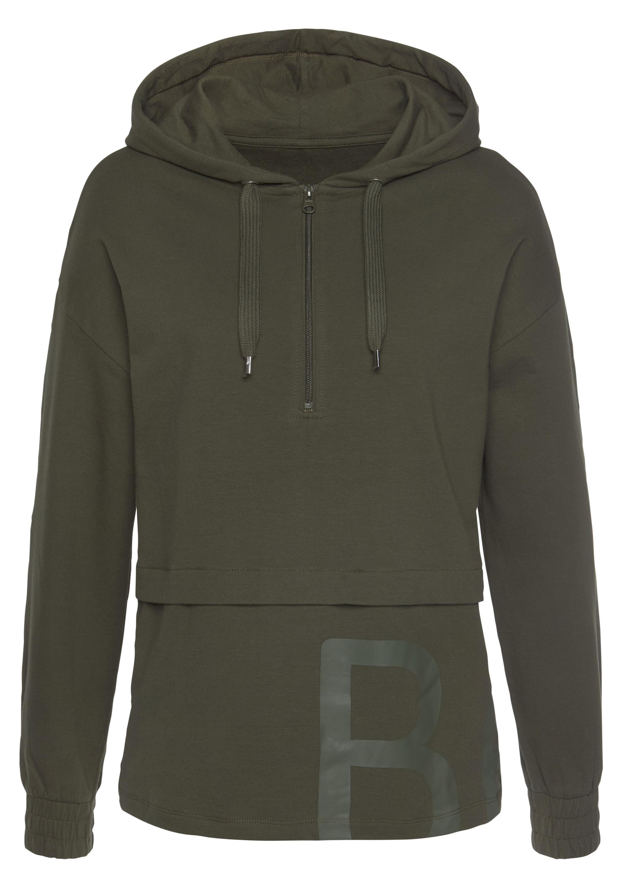 Gemütliches Sweatshirt von Bench. Dezentes großes Markenlogo unten auf der Vorderseite. Kapuze mit Kordelzugbund. Reißverschluss auf der Vorderseite. Geraffte Ärmelbündchen und durch eine Absteppung betonte Taille. Für Freizeit und Sport geeignet. Kuschelig weiche, stretchige Baumwoll-Sweatqualität.