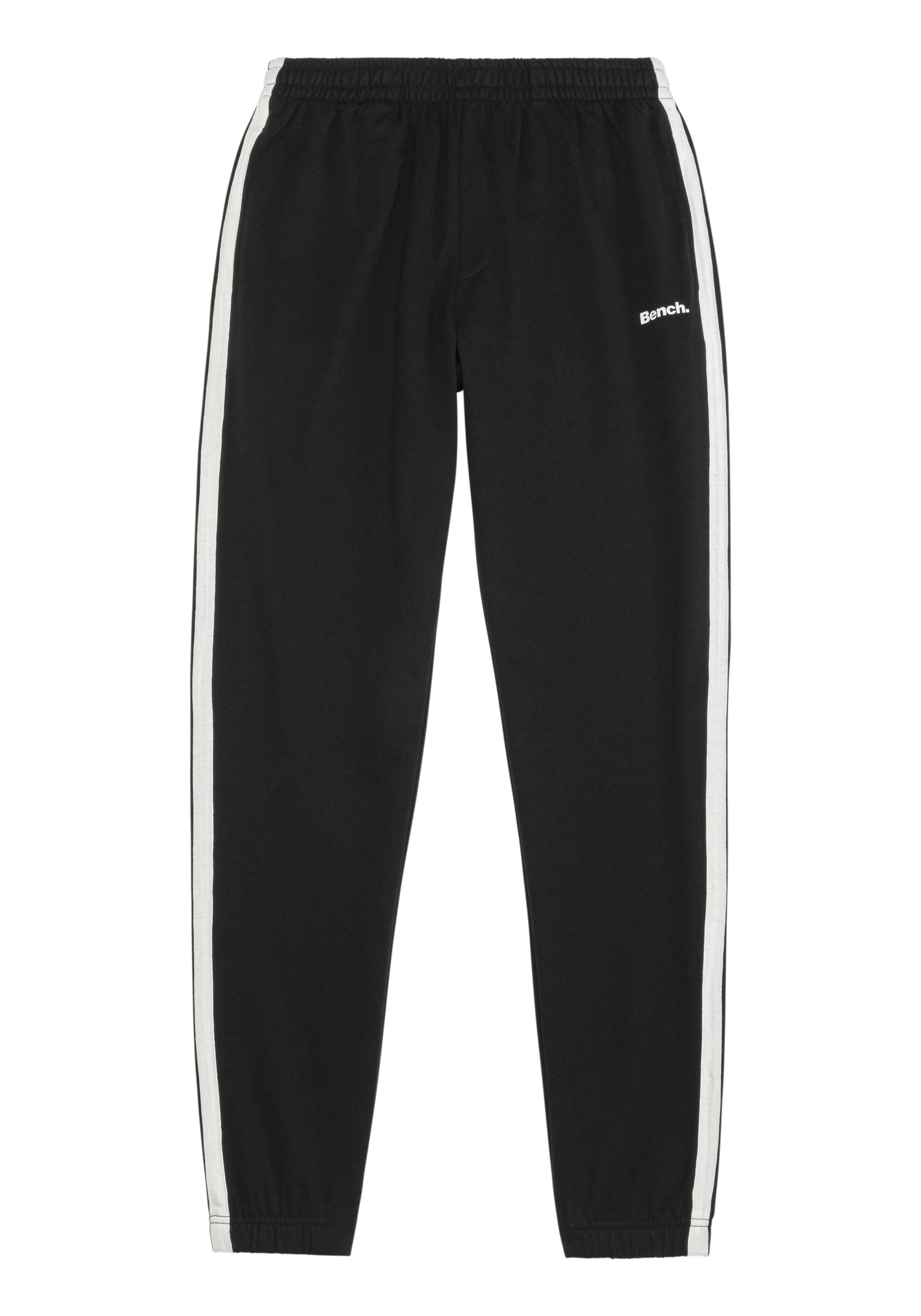 Bequeme Sweathose von Bench mit Druck vorn und seitlichen Kontraststreifen. Praktische Seitennahttaschen. Innen weich angeraute Sweatqualität im Baumwoll-Mix.