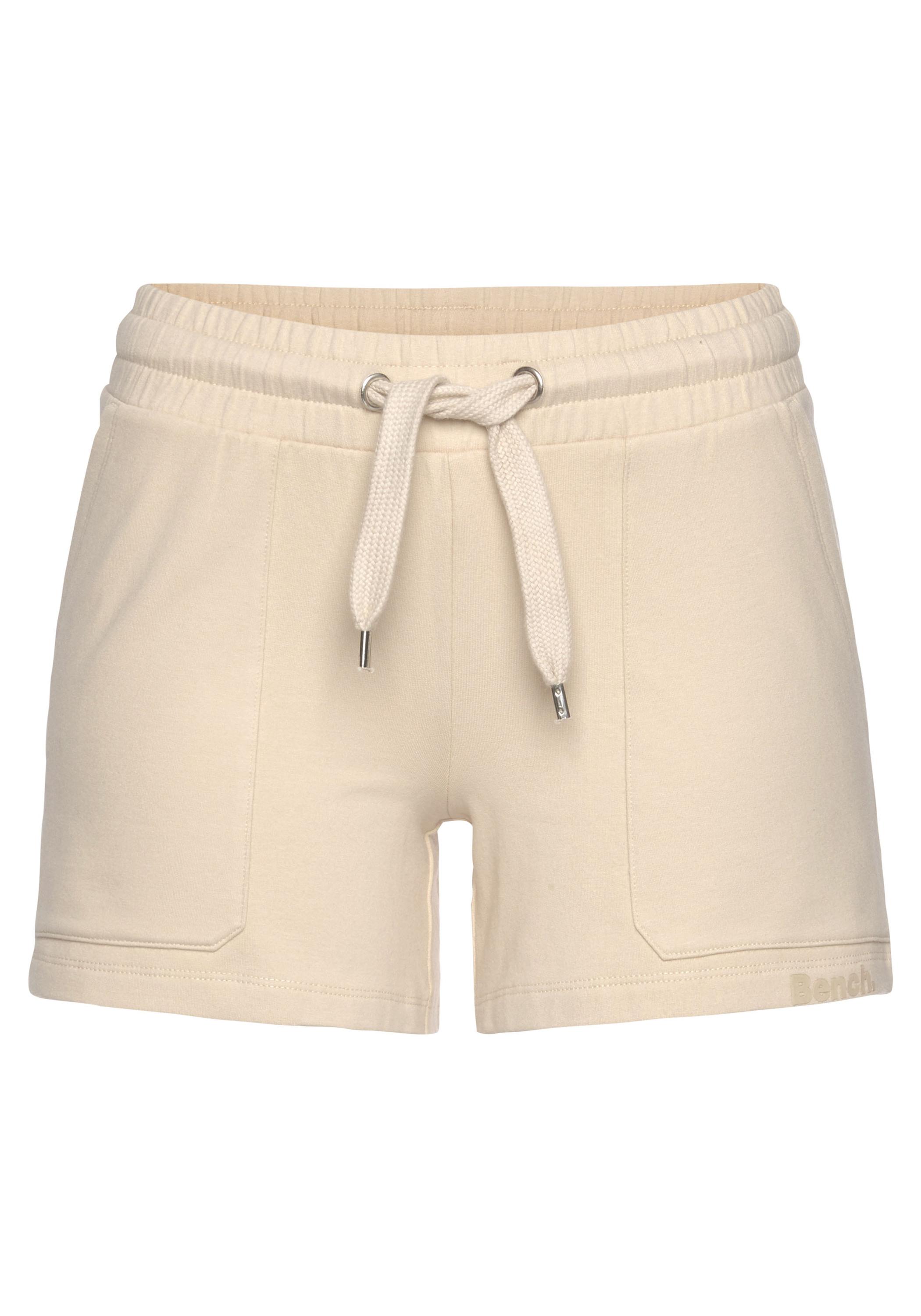 Sportliche Bermudas von Bench. Geraffter Kordelzugbund. Toniger kleiner Logoprint am linken Bein. Optimal für Sport und Freizeit an warmen Tagen. Weiche, elastische Sweatware.