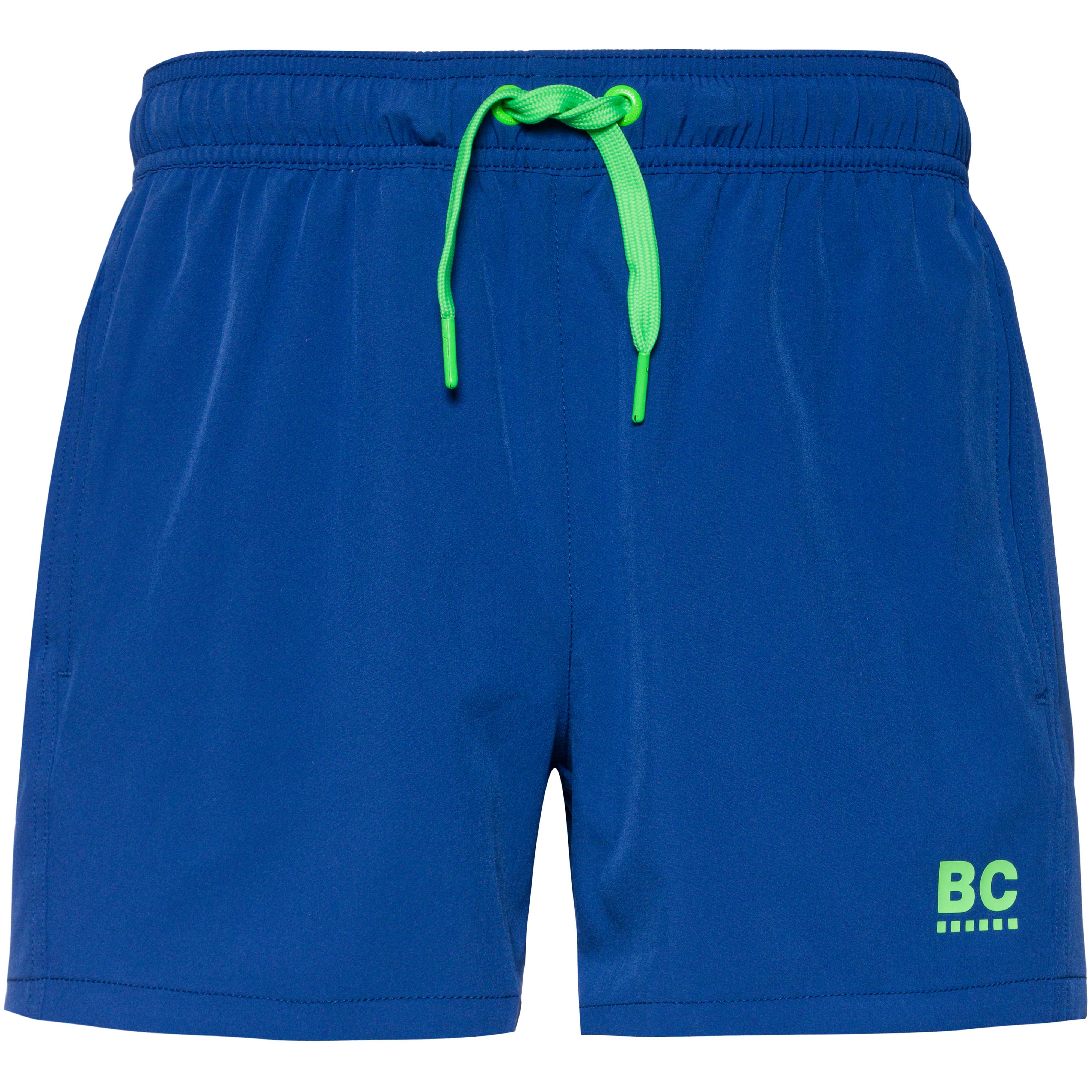Badehose aus schnelltrocknendem Stretchgewebe; weitenregulierbarer Elastikbund mit integriertem Kordelzug; seitliche Eingriffstaschen; 1 Gesäßtasche mit Klettverschluss und Wasserablauföse; Innenslip aus Meshgewebe; Obermaterial 92% Polyester, 8% Elastan, Futter 100% Polyester.